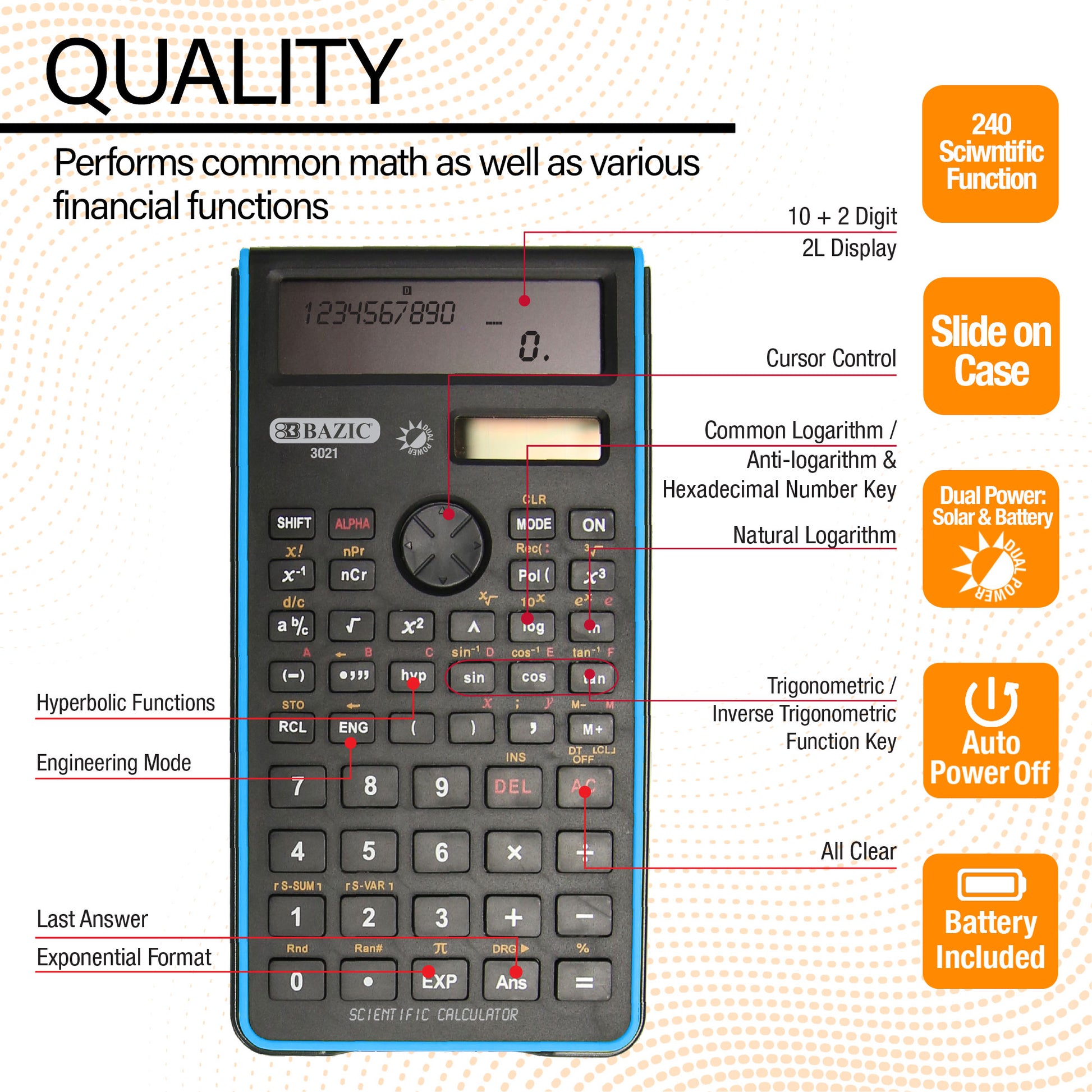 - PROFESSIONAL GRADE CALCULATORS. Measure: 5.9" x 3.1" x 0.5". 240 scientific functions calculator, meet your most calculation requirements for maths, algebra, fractions, statistics, accounting etc.