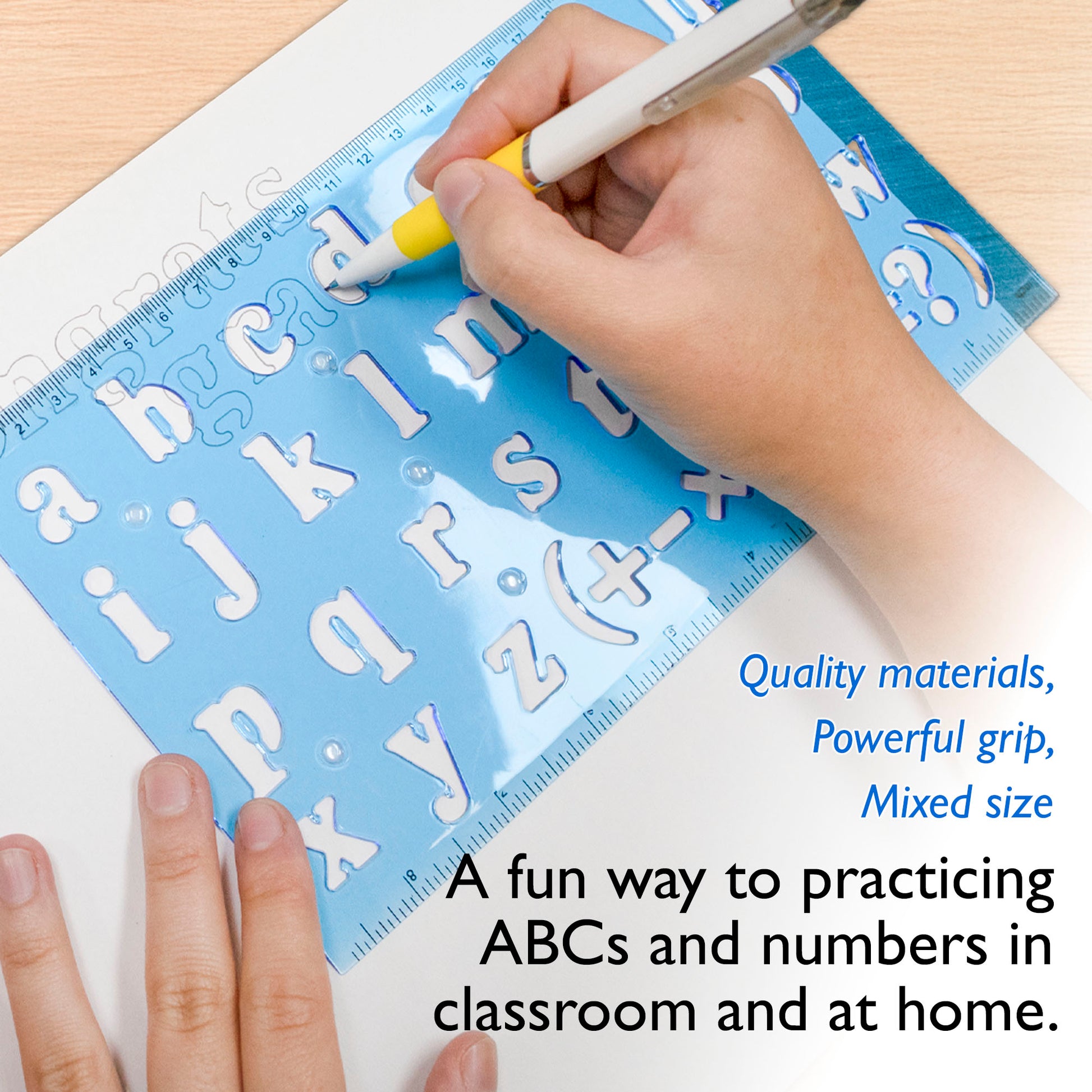 - VARIANT DESIGN. Each Letter Size measures 13/16" (20mm). A-Z Uppercase, lowercase alphabet, 0-9 number, and math calculation symbols. Feature two-sided 8 inches / 22-centimeter measuring.