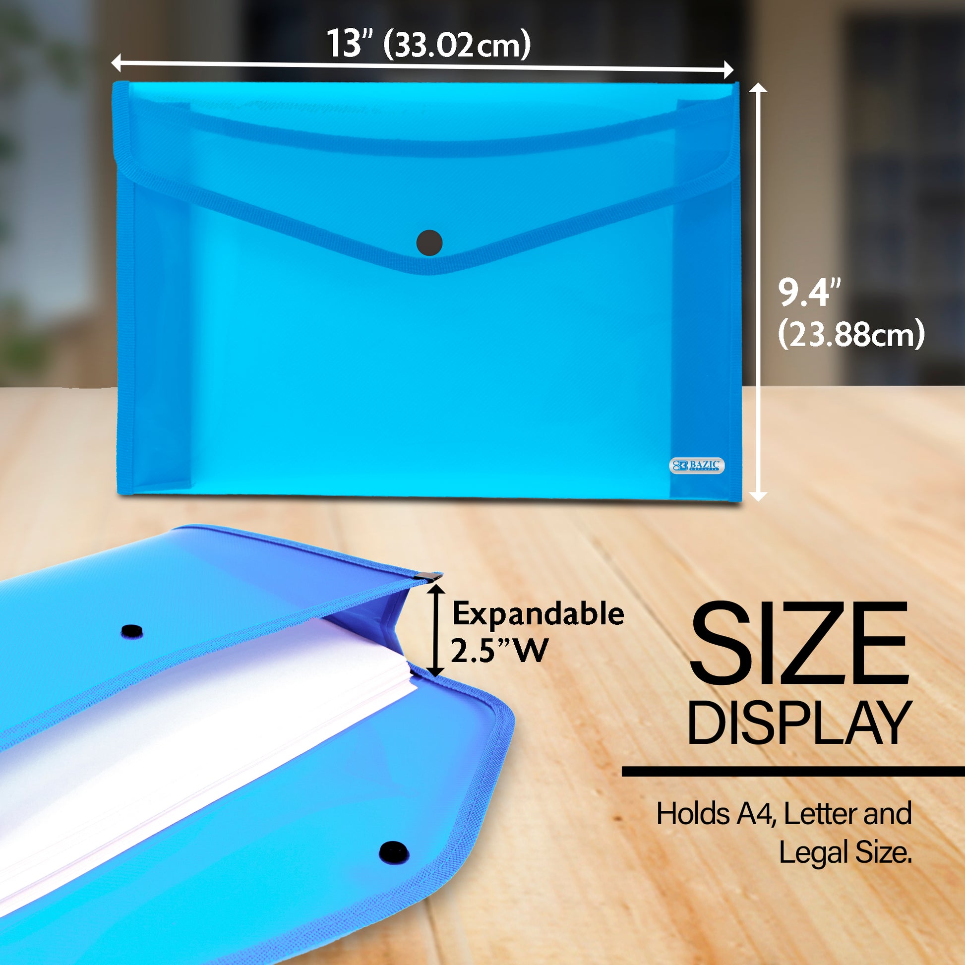 - FILE ORGANIZER. Made from high quality Polypropylene (PP) Plastic material. Safe & Non Toxic. Measure: 13" x 9.4". Expandable 2.5" max. Single pocket. Fits both A4Size, Letter Size, and 13" laptop.