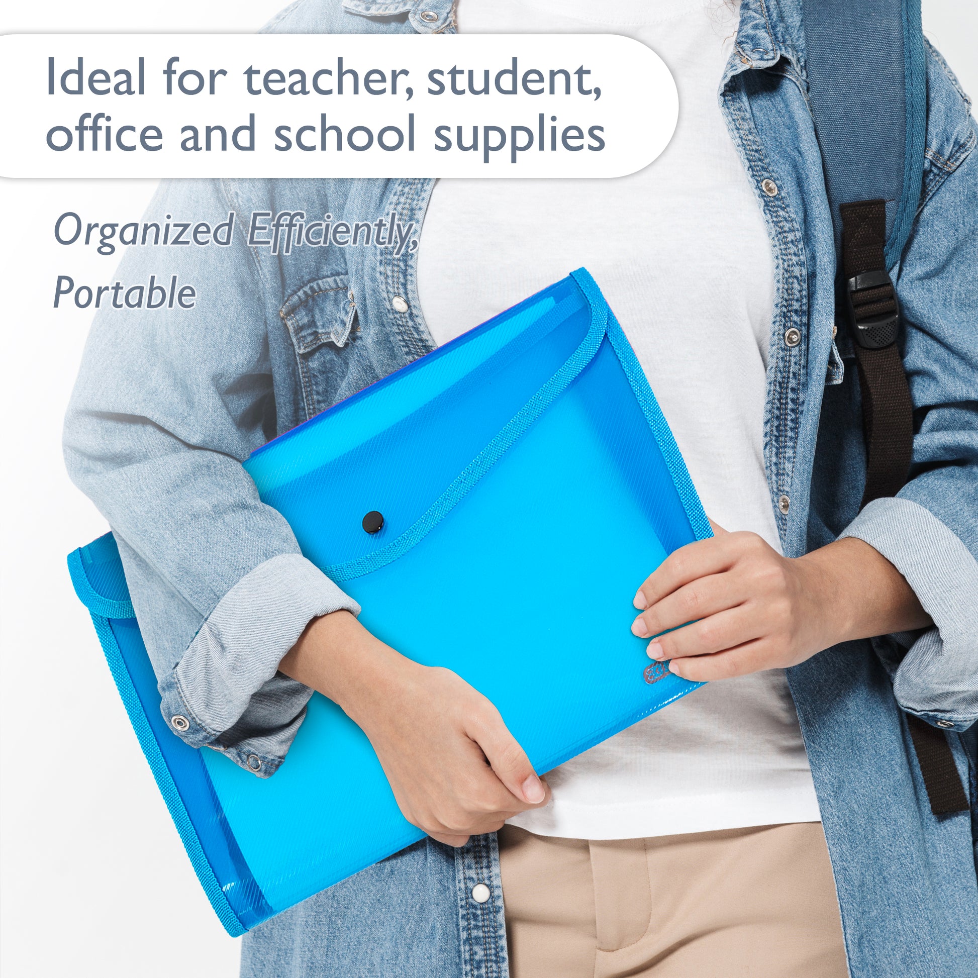 - VISIBLE IN TRANSLUCENT. Clear vivid and bright color folder bag allow checking the contents inside the file folders. Holder features snap closure for quick access.
