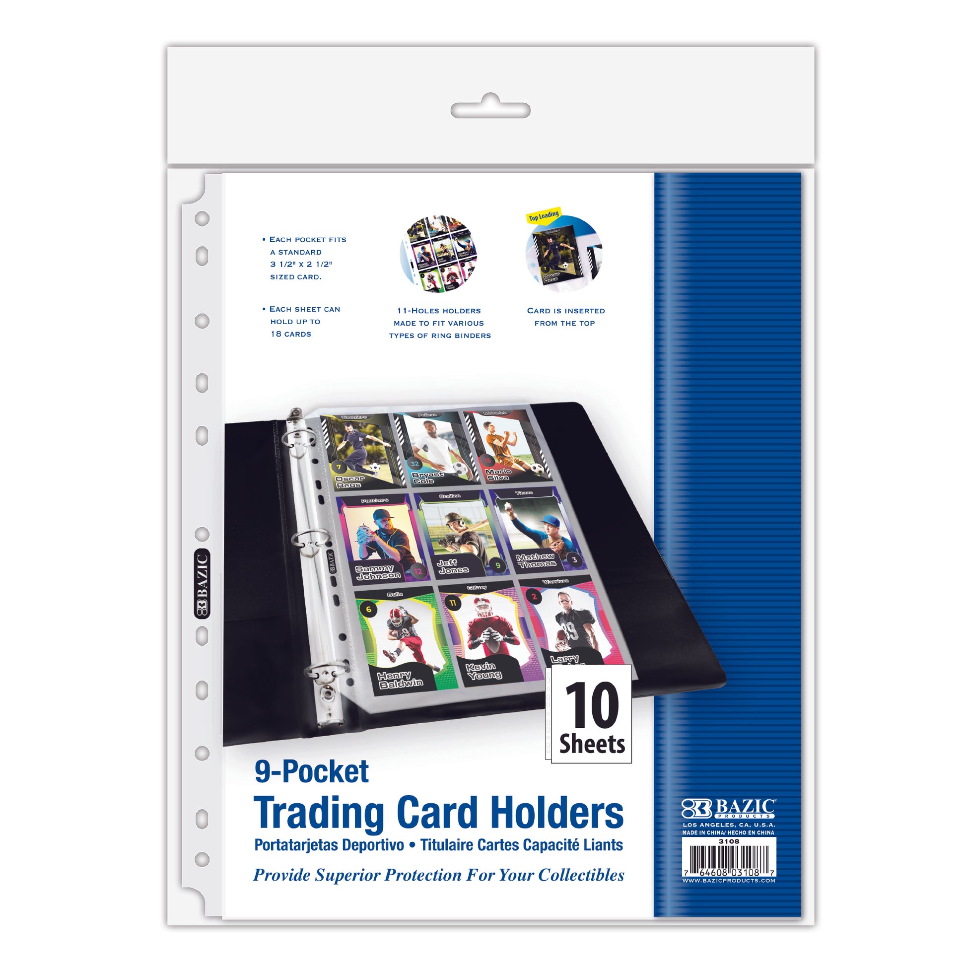 - WIDE APPLICATION. These 9 pocket trading card sleeves are perfect for all standard trading cards such as baseball cards, football cards, game cards, coupons, mini photos, etc.