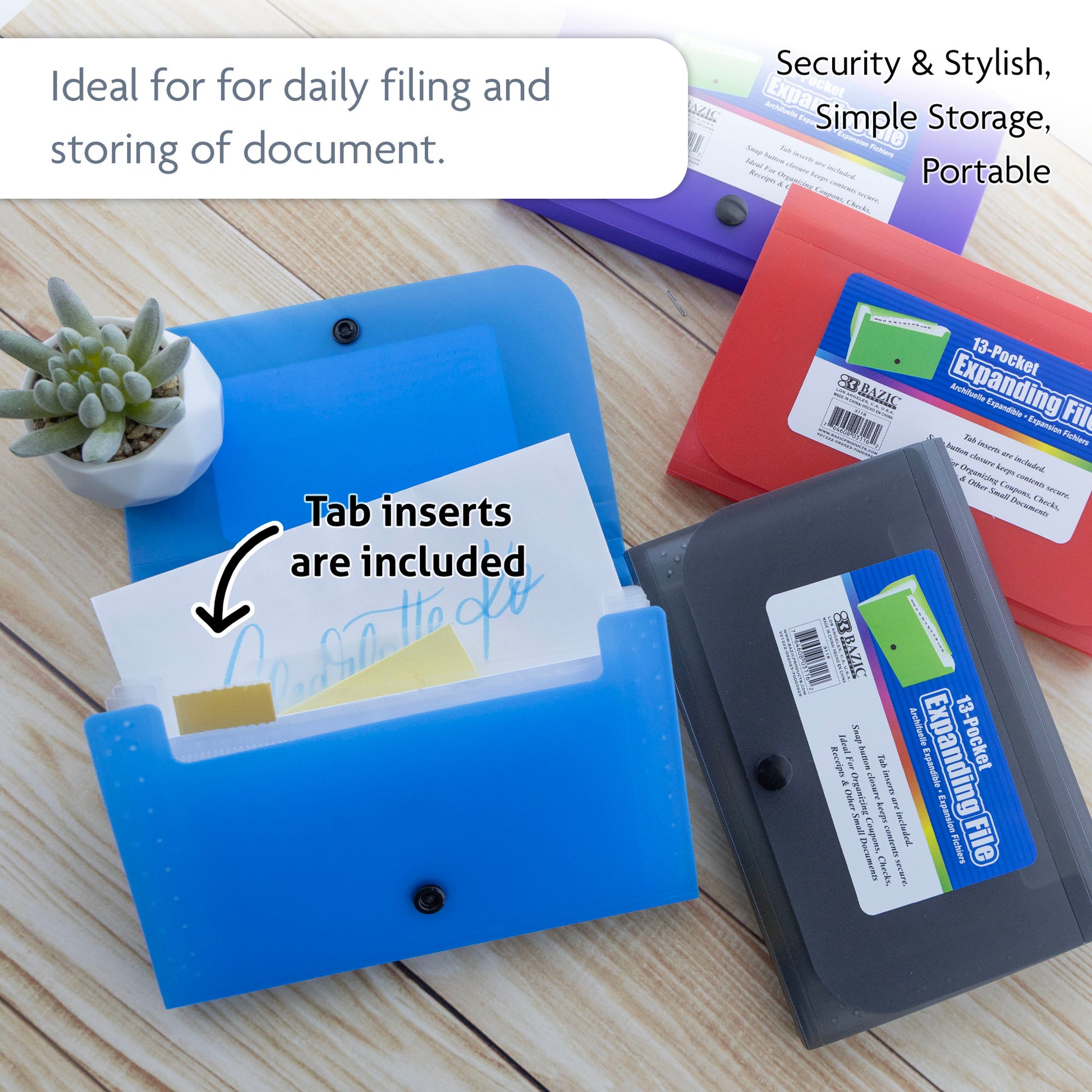 - IDEAL STORAGE. Lightweight, flexible, tear resistant, and waterproof poly files. Holder features snap closure for quick access and secure your documents. Suitable for office, school, and home use.