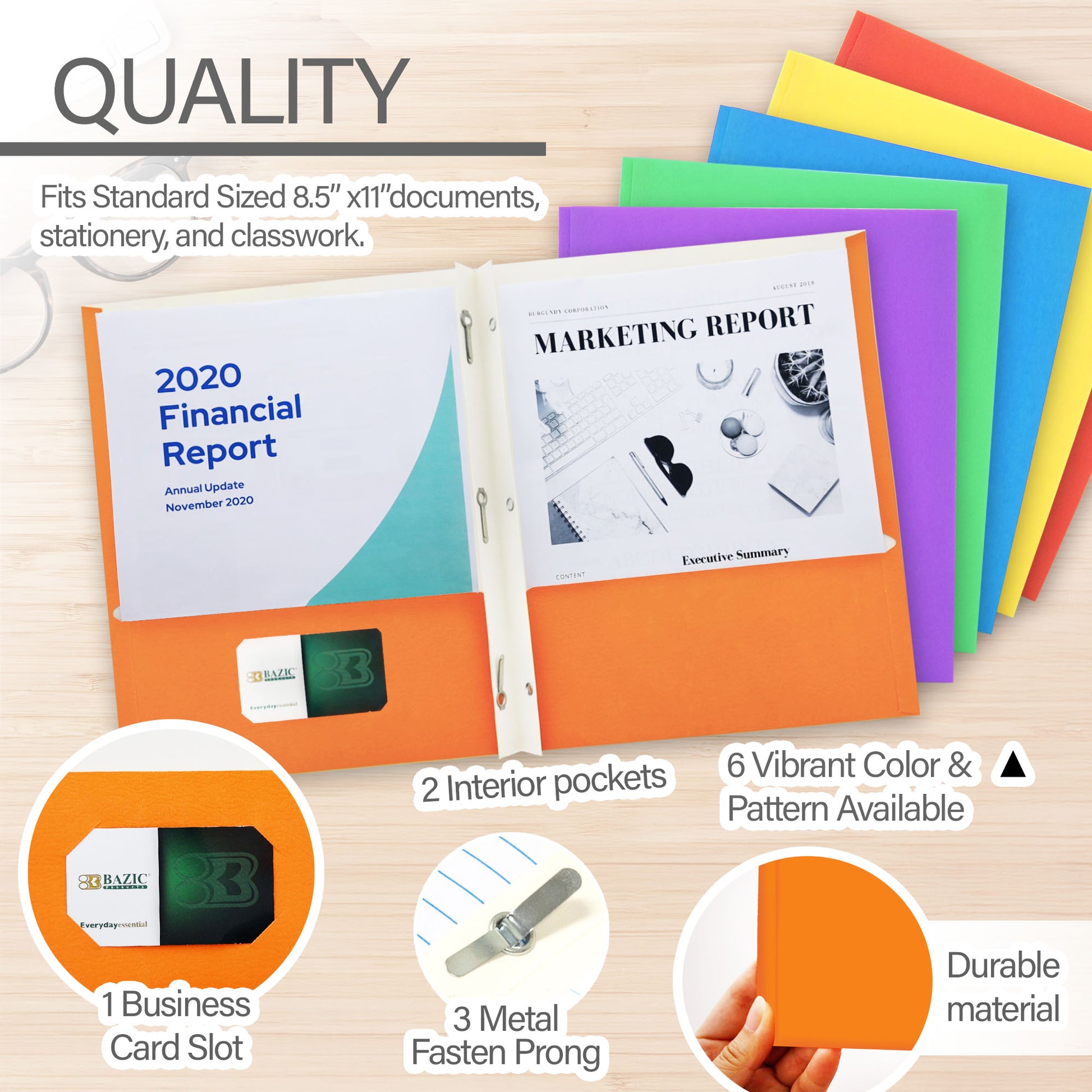 - QUALITY. The 2 pocket portfolio folders feature 3 prong fastener enabling punched documents to be secured inside the folder effortlessly and efficiently.