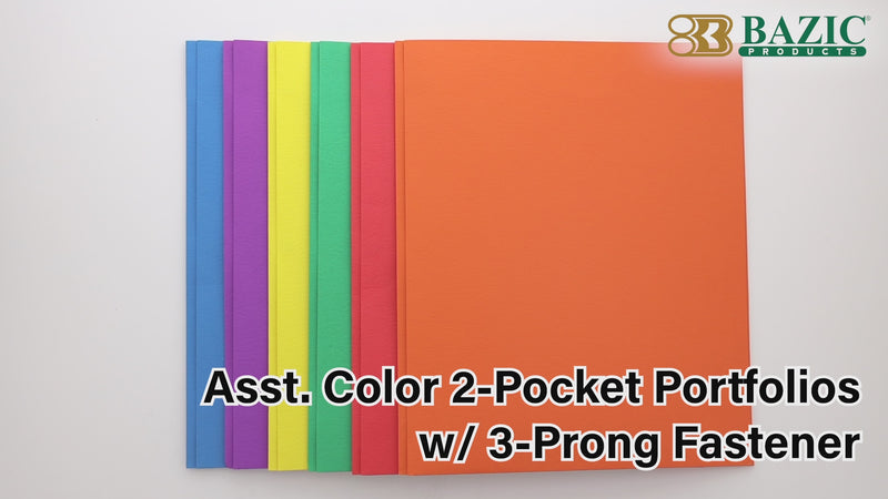 Asst. Color 2-Pocket Portfolios w/ 3-Prong Fastener