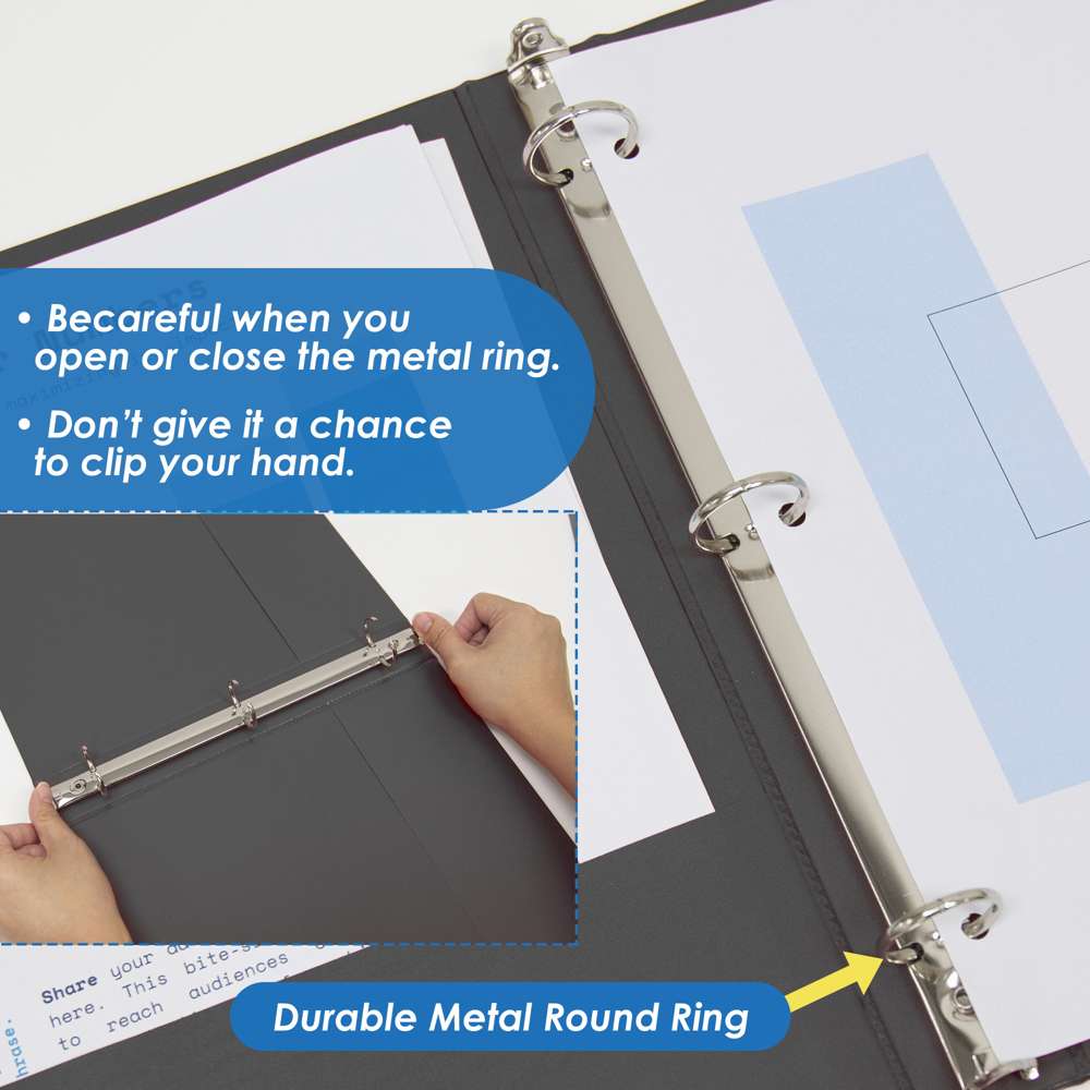 - EVERYDAY USE. Stay ready and oragnized for your presentation, business meeting, interview, and more with our 3 rings binders. Board made with 100% recycle material.