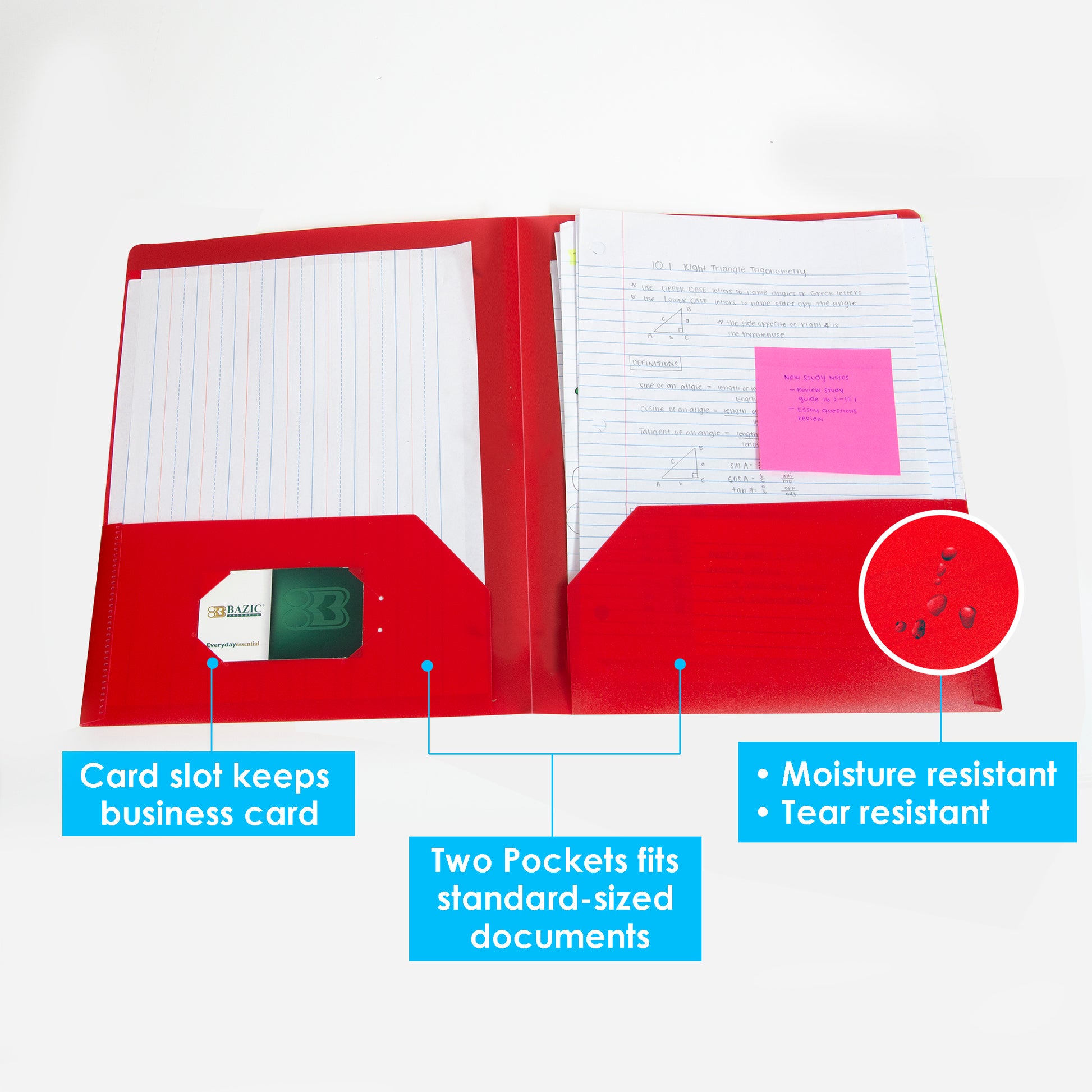 - DESIGN. Each portfolio has two interior pockets and a die-cut slot to hold a business card or label, keep your important files safe; store all your important assignments in one place.