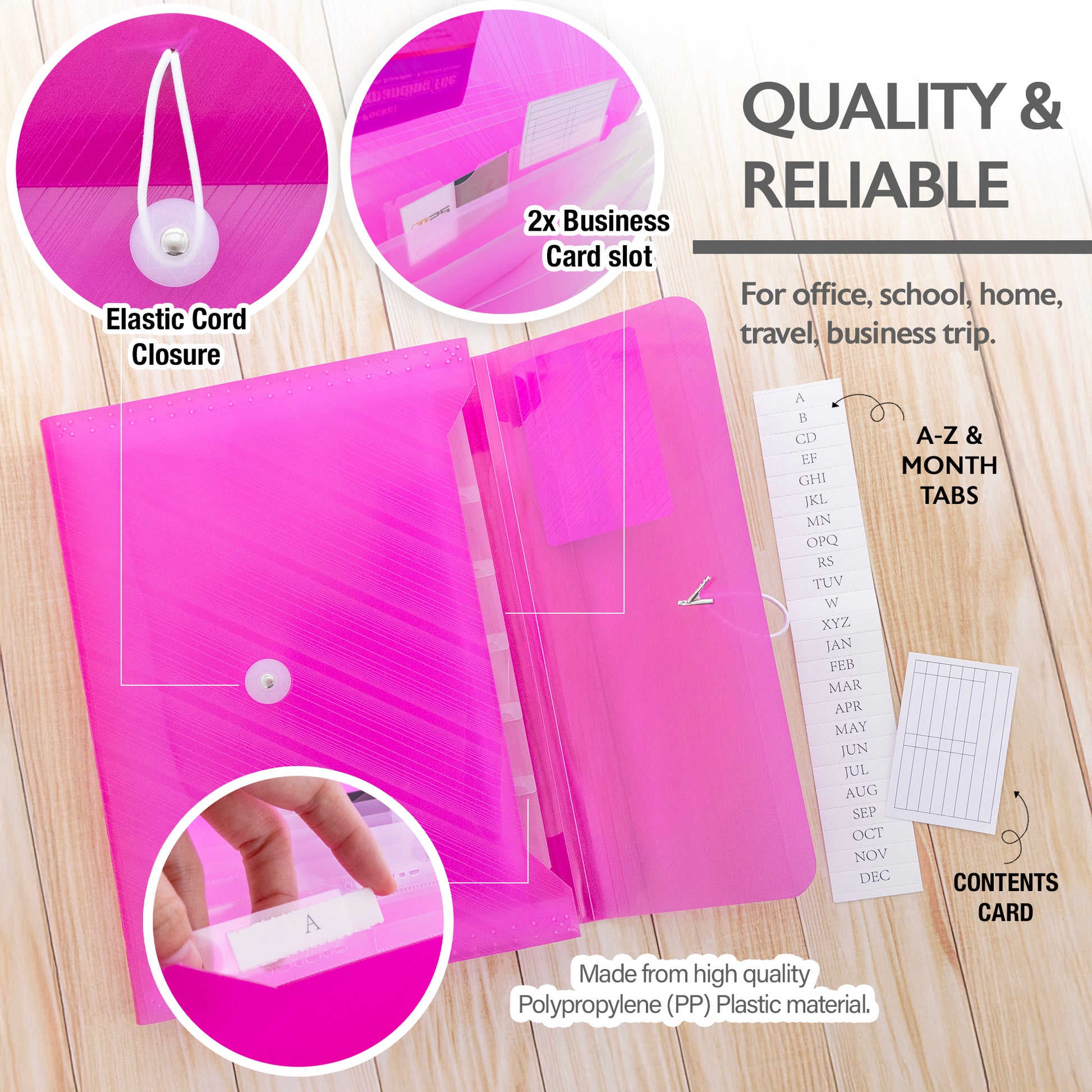 - IDEAL STORAGE. Lightweight, flexible, tear resistant, and waterproof. Holder features elastic band closure for quick access and secure your document. For office, school, home, travel, business trip.