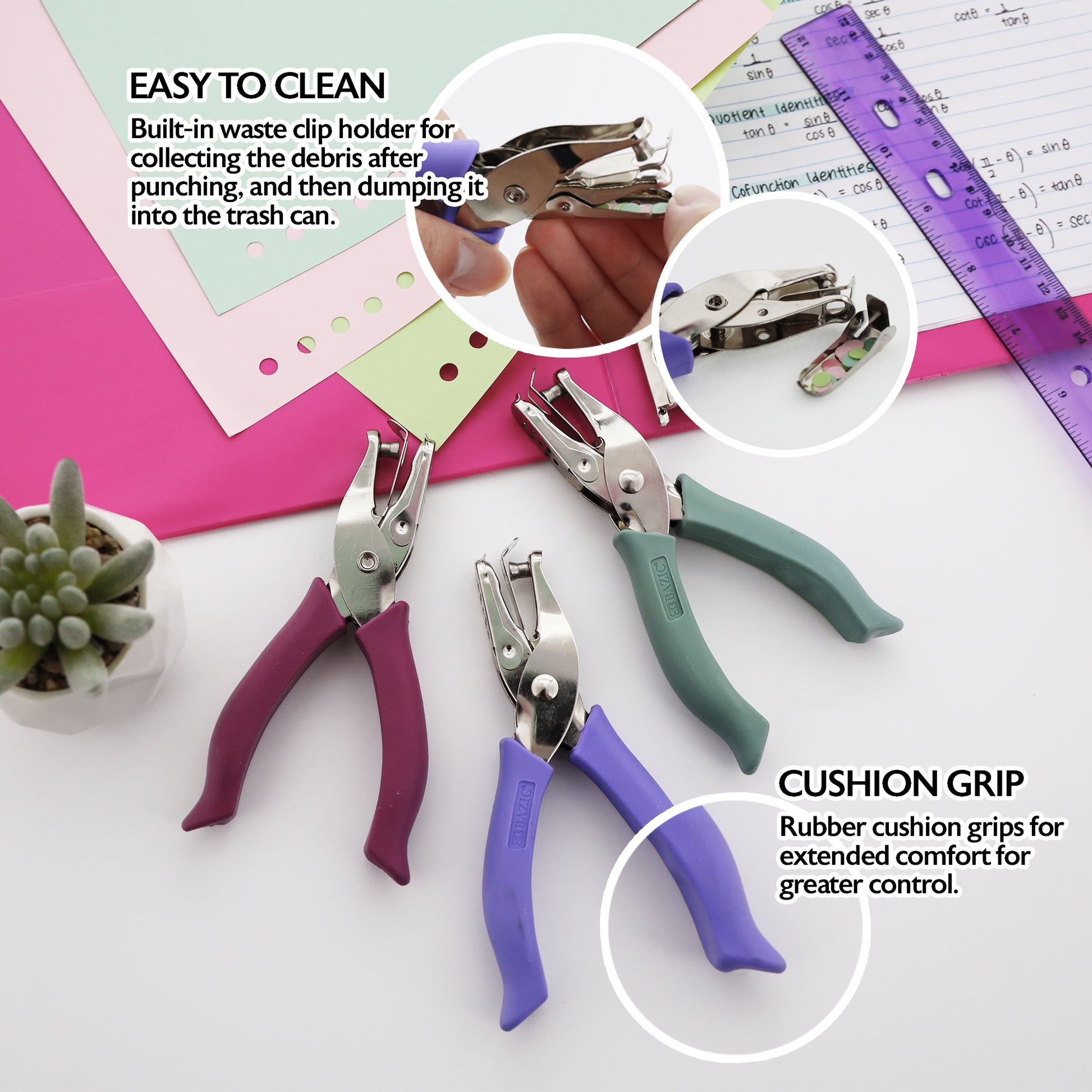 - CUSHION GRIP. Do not worry about accidentally scratching your hands, these hole punchers feature rubber cushion grips for extended comfort for greater control.
