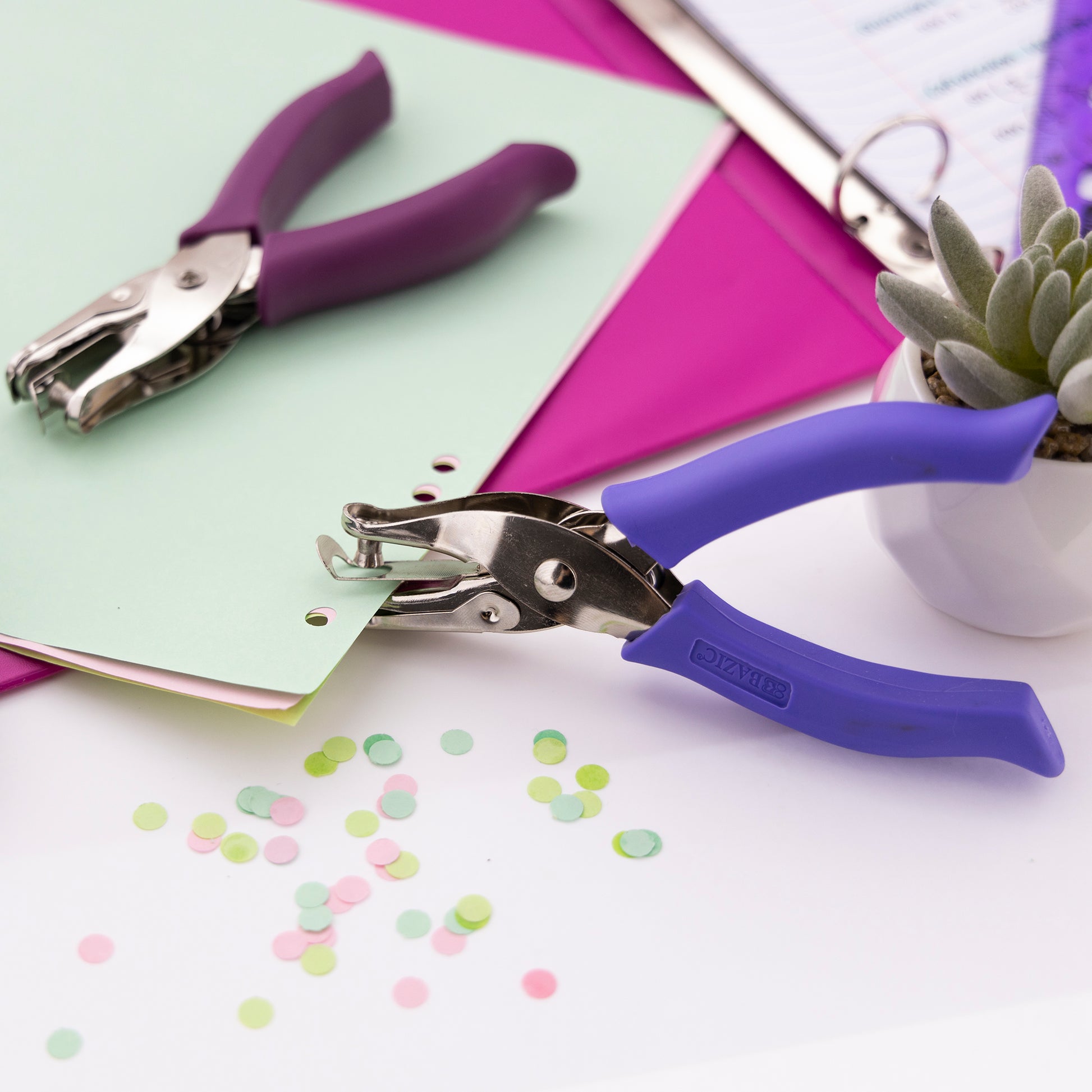 - USES. Ideal for school, home and office. Use on paper, plastics, cardboard and more! Great for scrapbooks, card making, confetti, invitations and all paper crafts.