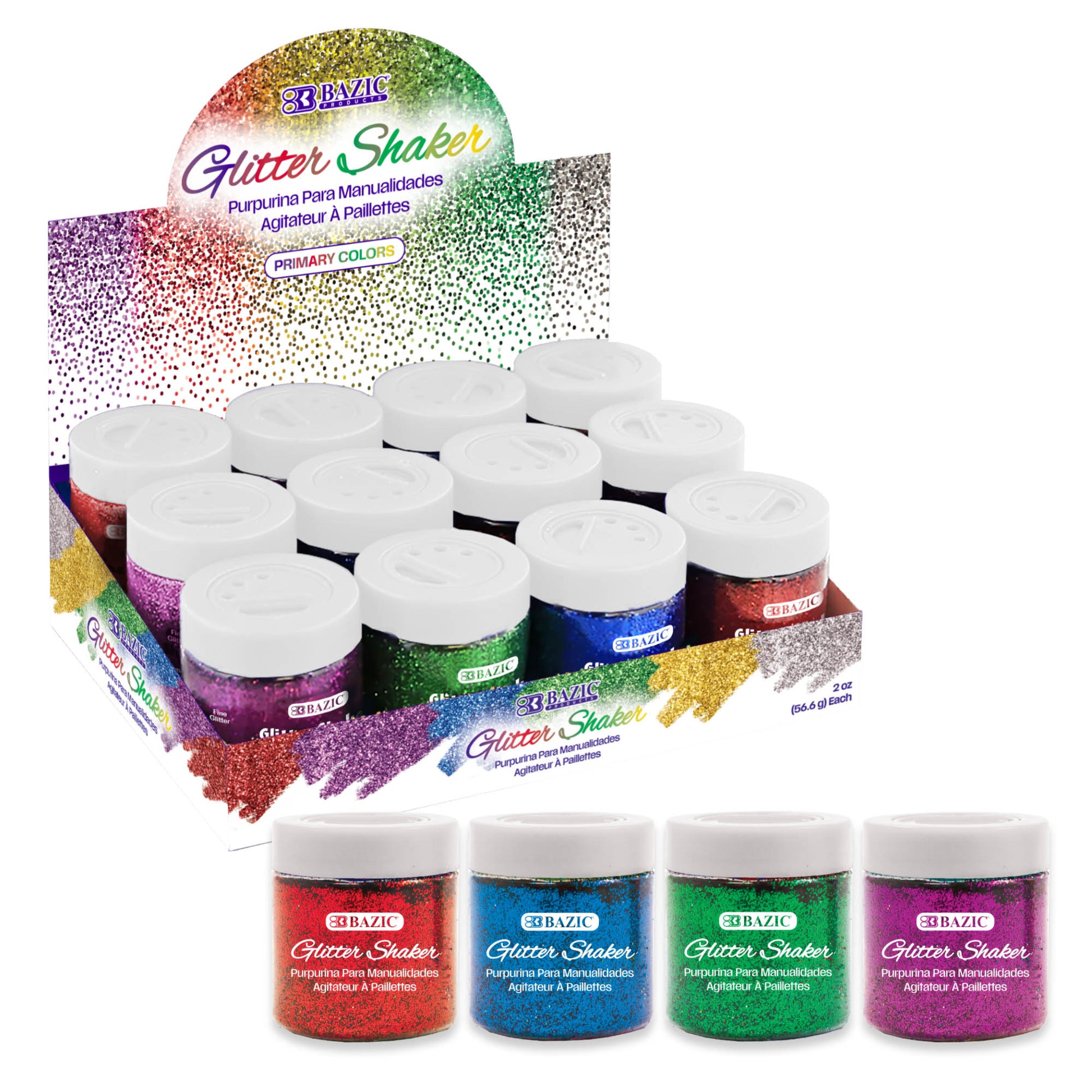 2 oz (56.6g) Primary Color Glitter Shaker