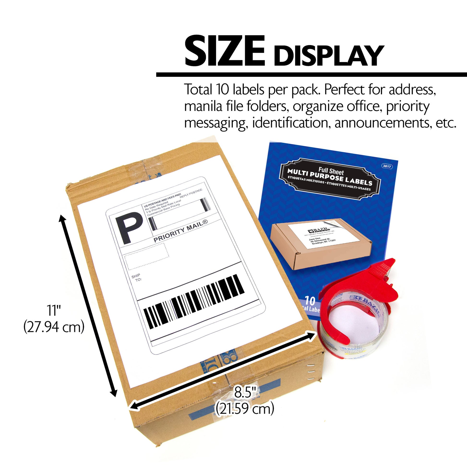 - VERSATILE. Each label measure 11" x 8 1/2" A4 Letter Size. Total 10 labels per pack. Perfect for address, manila file folders, organize office, priority messaging, identification, announcements, etc.