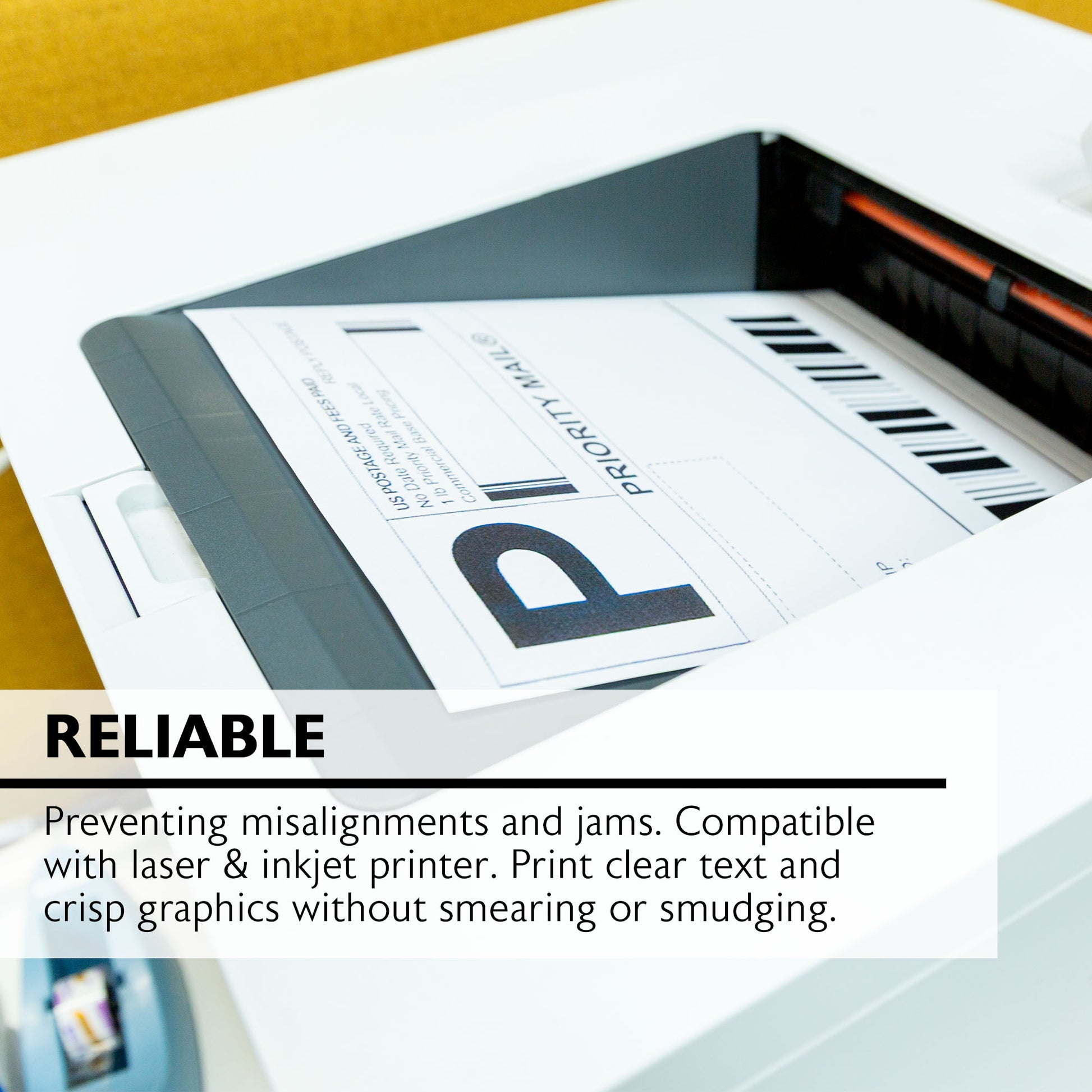 - RELIABLE. Preventing misalignments and jams. Compatible with laser & inkjet printer. Print clear text and crisp graphics without smearing or smudging.