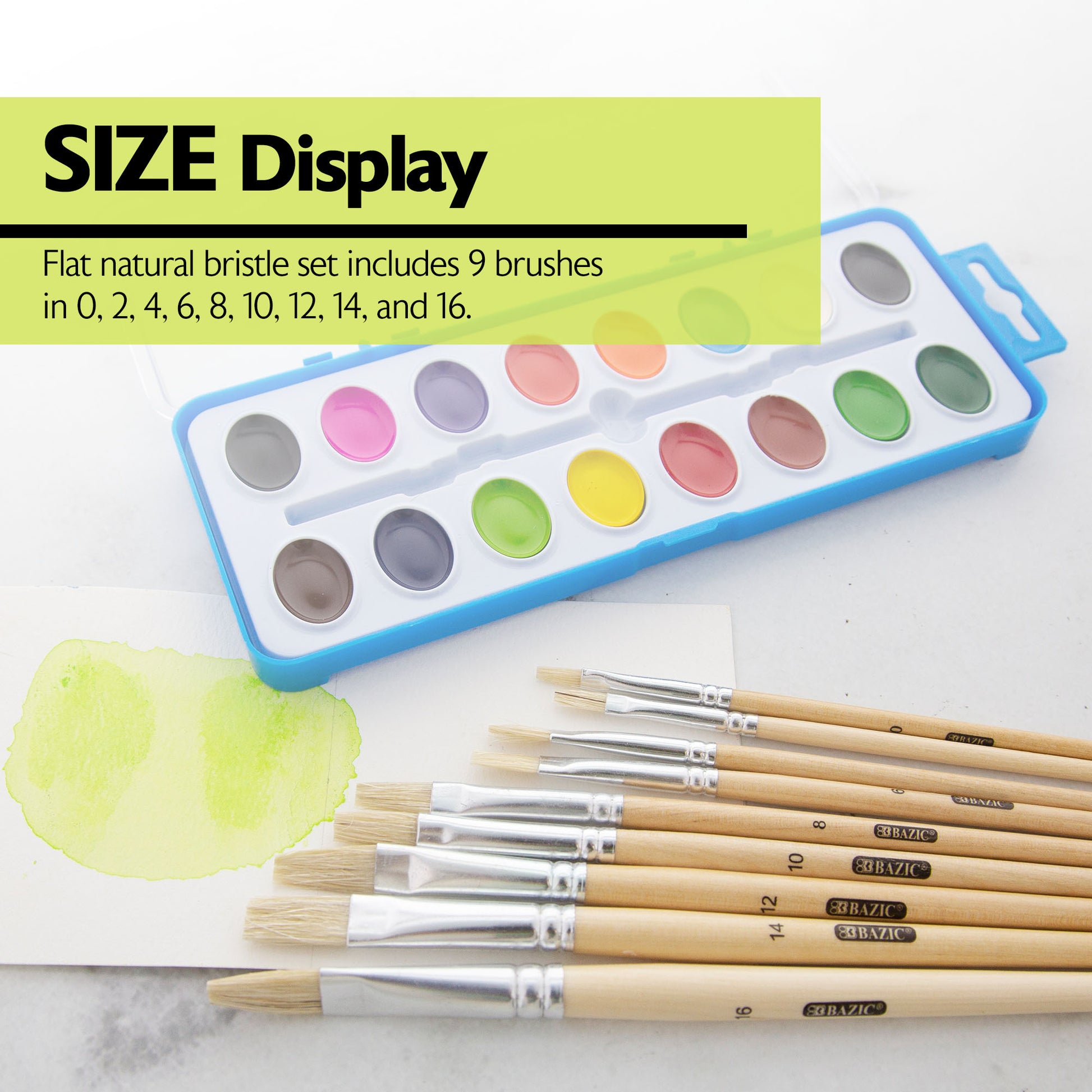 - ASSORTEDSize PAINT BRUSH. Flat natural bristle set includes 9 brushes. Hog bristle is strong and robust, suitable for heavy paints and rough canvas. Ideal for oil and acrylic painting.