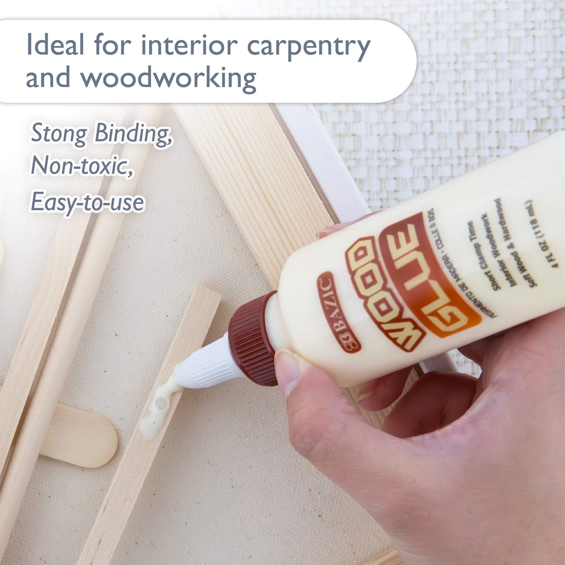 - STRONG BINDING. Super strong bond for interior carpentry and woodworking. Works great with almost any softwood, hardwood, and natural wood composites.