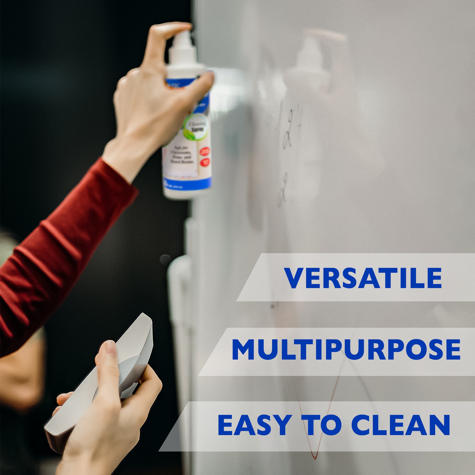 - EASY TO CLEAN. Spray bottle for maximum board coverage. Let sit for 2-3 minutes. Use soft cloth or board eraser to wipe the surface of the boards. Repeat if necessary.