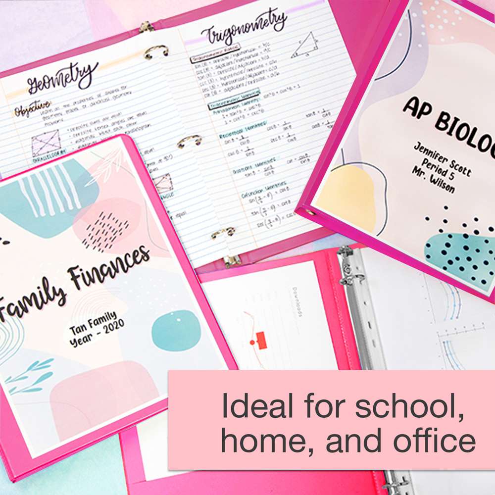 - ORGANIZE WITH EASE. Perfect binders for those school, office, classroom and college supply needs. Ideal for storing and archiving paper, reports, assignments, documents, projects, presentations.