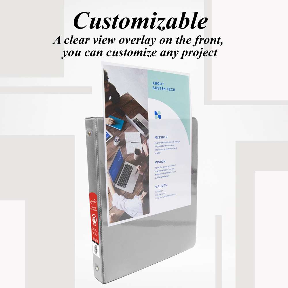 - GREAT DURABILITY. Designed and manufactured with enhanced durability featuring a tear-resistant cover with clear transparent view covers to insert or customize your binder on the front, back and spine. Two interior pockets for extra storage.