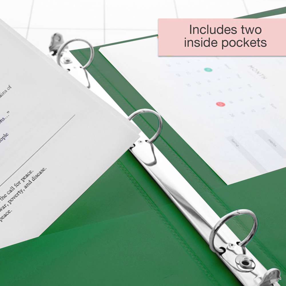 1.5" Green 3-Ring View Binder w/ 2-Pockets