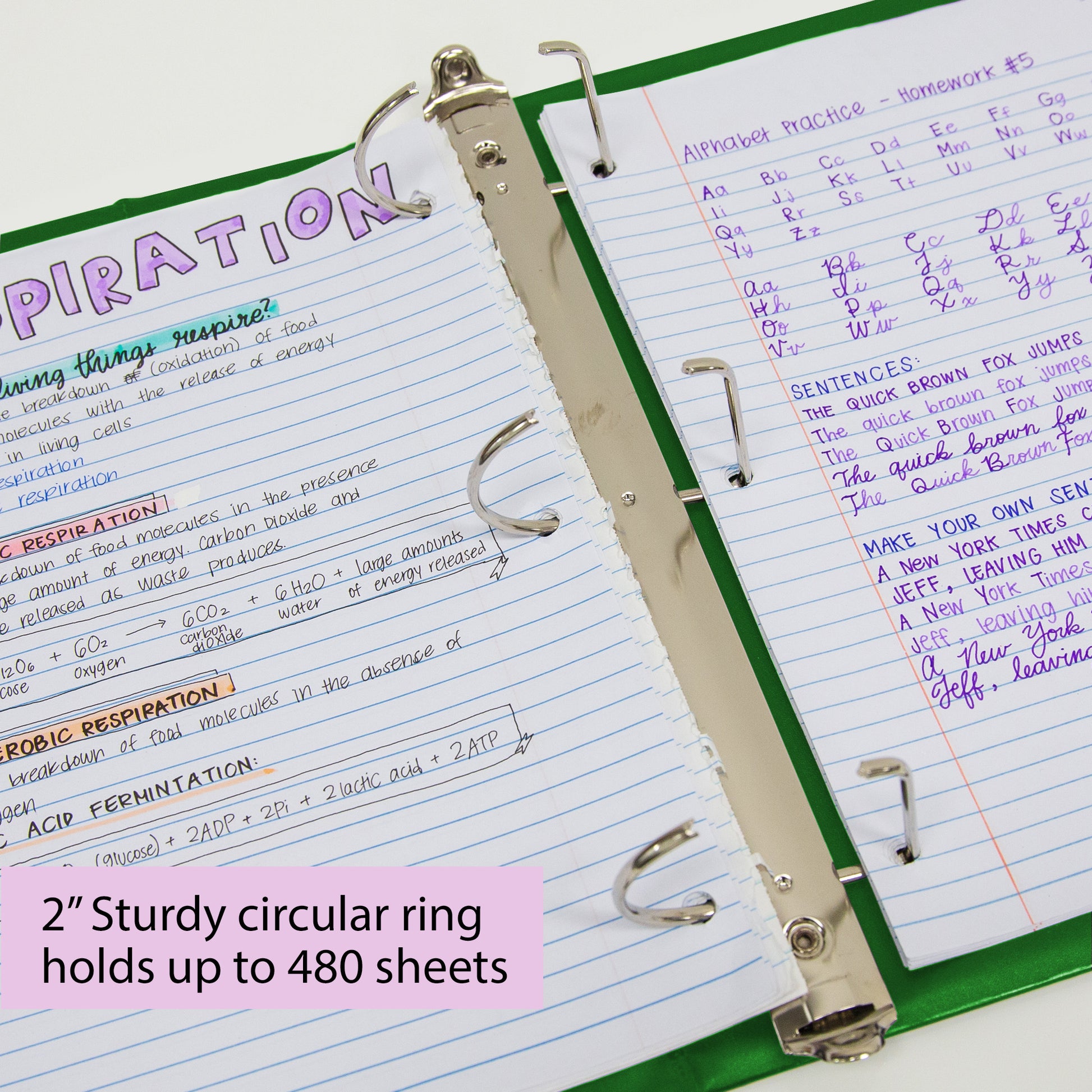 - ARCHIVAL SAFE. 2 Inch binder can hold up to 480 sheets / papers. Slanted mechanism not only stores more, but also allows you to turn pages more easily. Rings open and close easily for adding pages.