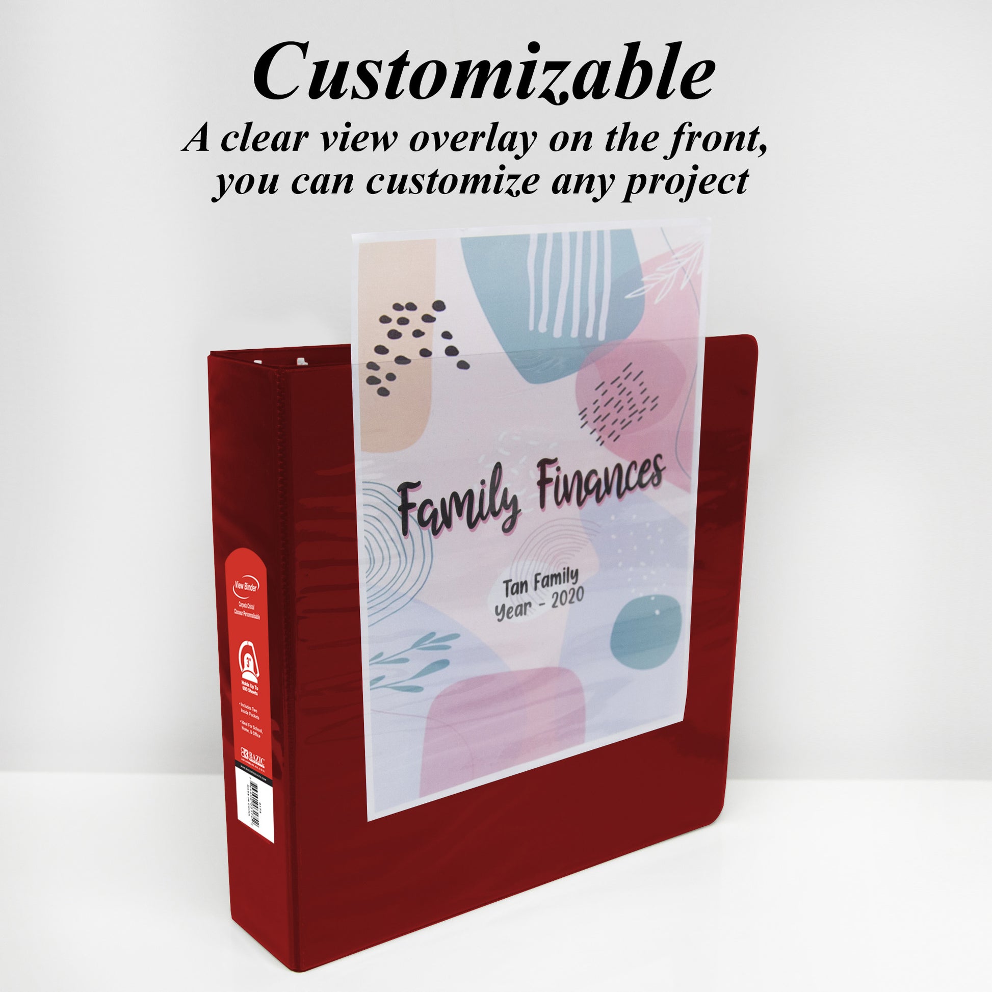 - GREAT DURABILITY. Designed and manufactured with enhanced durability featuring a tear-resistant cover with clear transparent view covers to insert or customize your binder on the front, back and spine. Two interior pockets for extra storage.
