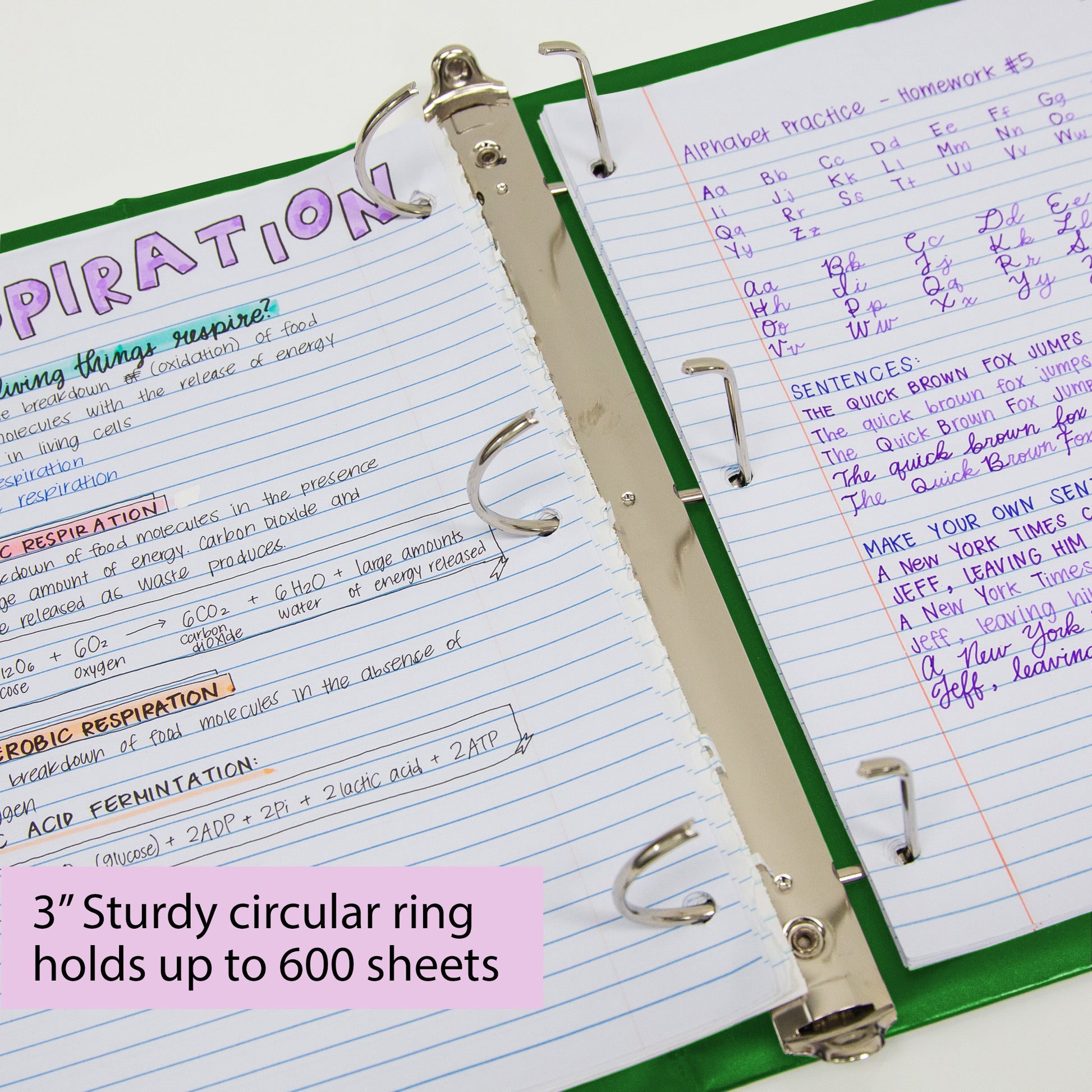 - ARCHIVAL SAFE. 3 Inch binder can hold up to 600 sheets / papers. Slanted mechanism not only stores more, but also allows you to turn pages more easily. Rings open and close easily for adding pages.
