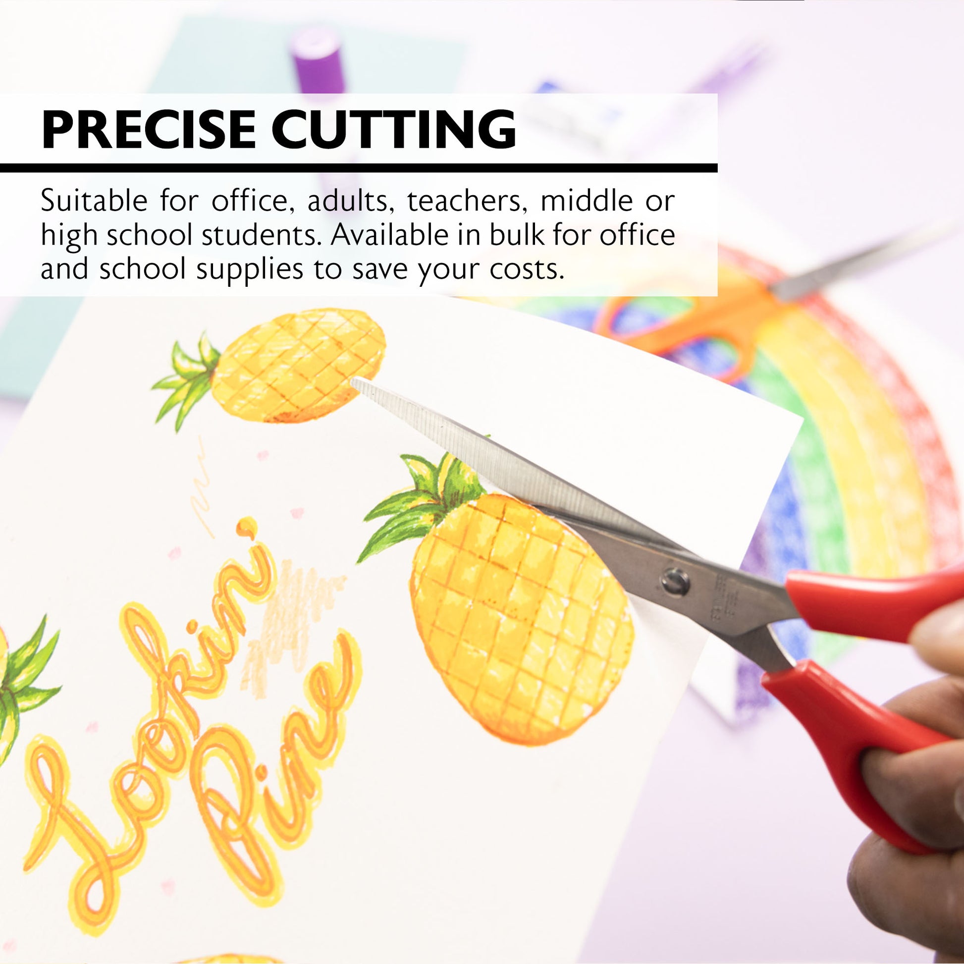 - PRECISE CUTTING. Suitable for office, adults, teachers, middle or high school students. Available in bulk for office and school supplies to save your costs. Available in 4 bright colors.