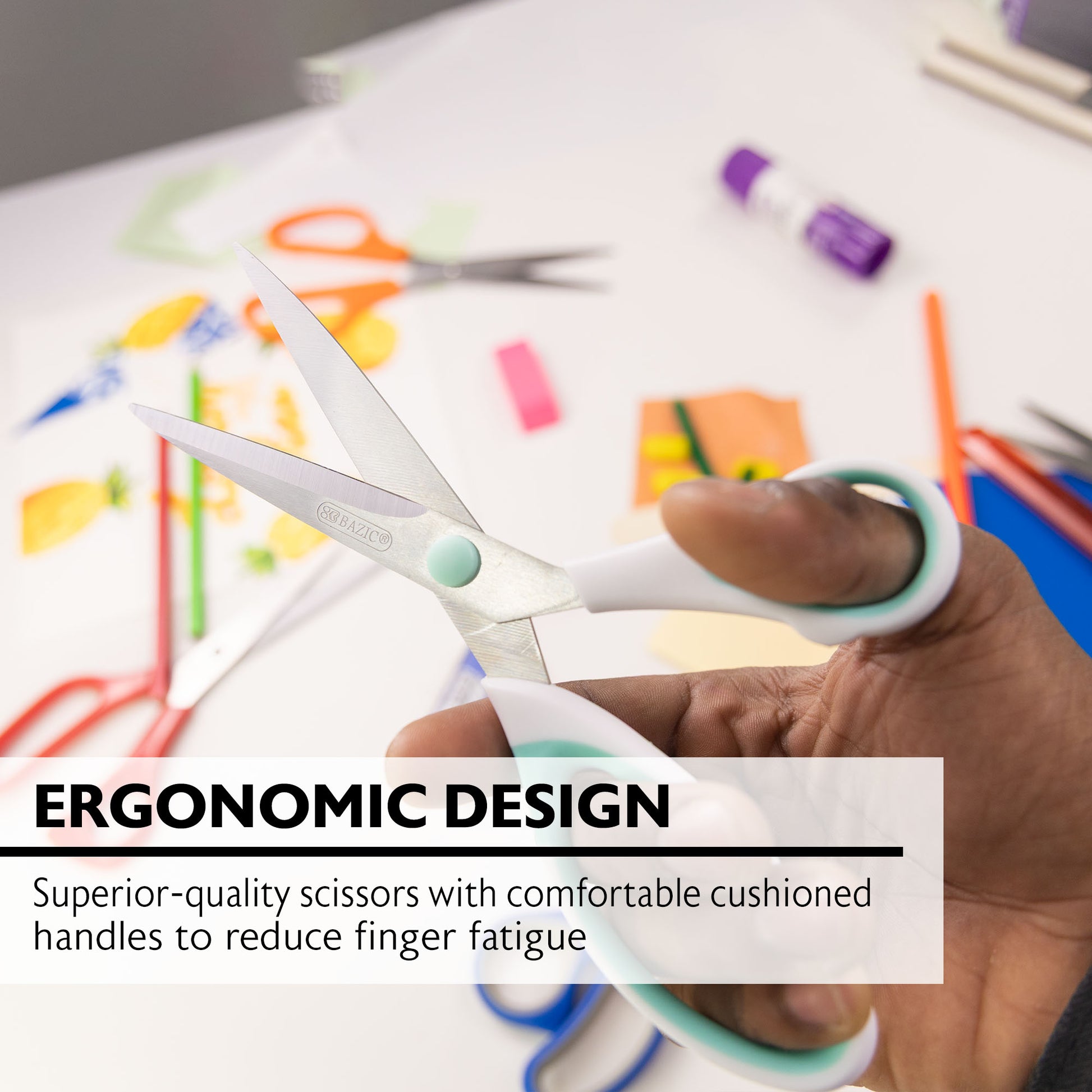 - DURABLE. Superior-quality scissors with comfortable cushioned handles to reduce finger fatigue. Made of lightweight stainless steel blade. Highly resistant to corrosion.