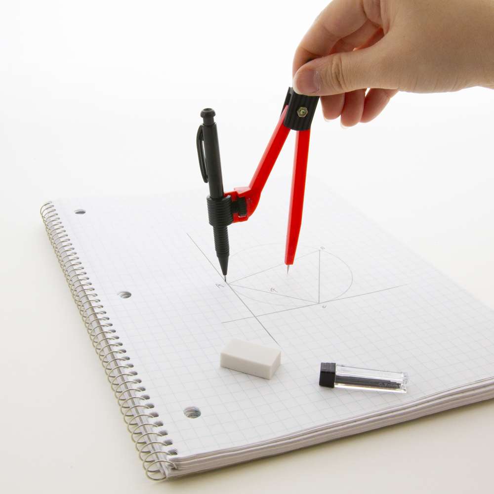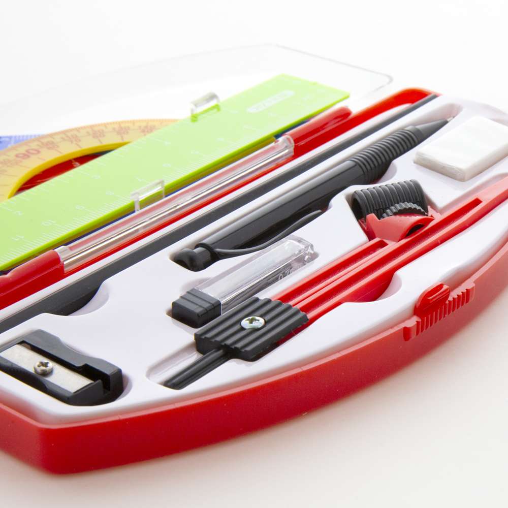 - MATH GEOMETRY KIT 11 PIECES. 180 degree semicircular protractor + Compass with 0.7 mm mechanical pencil + 30/60/90 Degree Triangle Ruler+ 45/90 Degree Triangle Rulers + Ruler 6" (15 cm) + Lead Fill + Eraser + Sharpener + Wood Pencil + Portable Transparent Case