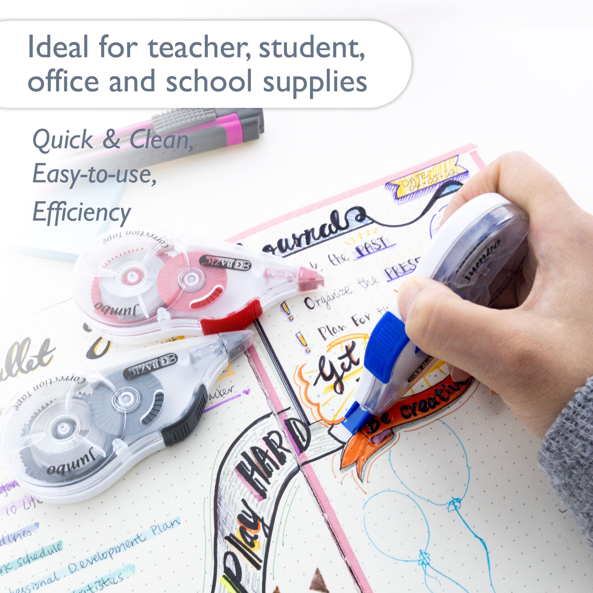 - CLEAN &QUICK. High quality film-based correction tape, super easy to apply with no mess. This odor free correction tape is an ideal alternative to smelly old correction fluid
