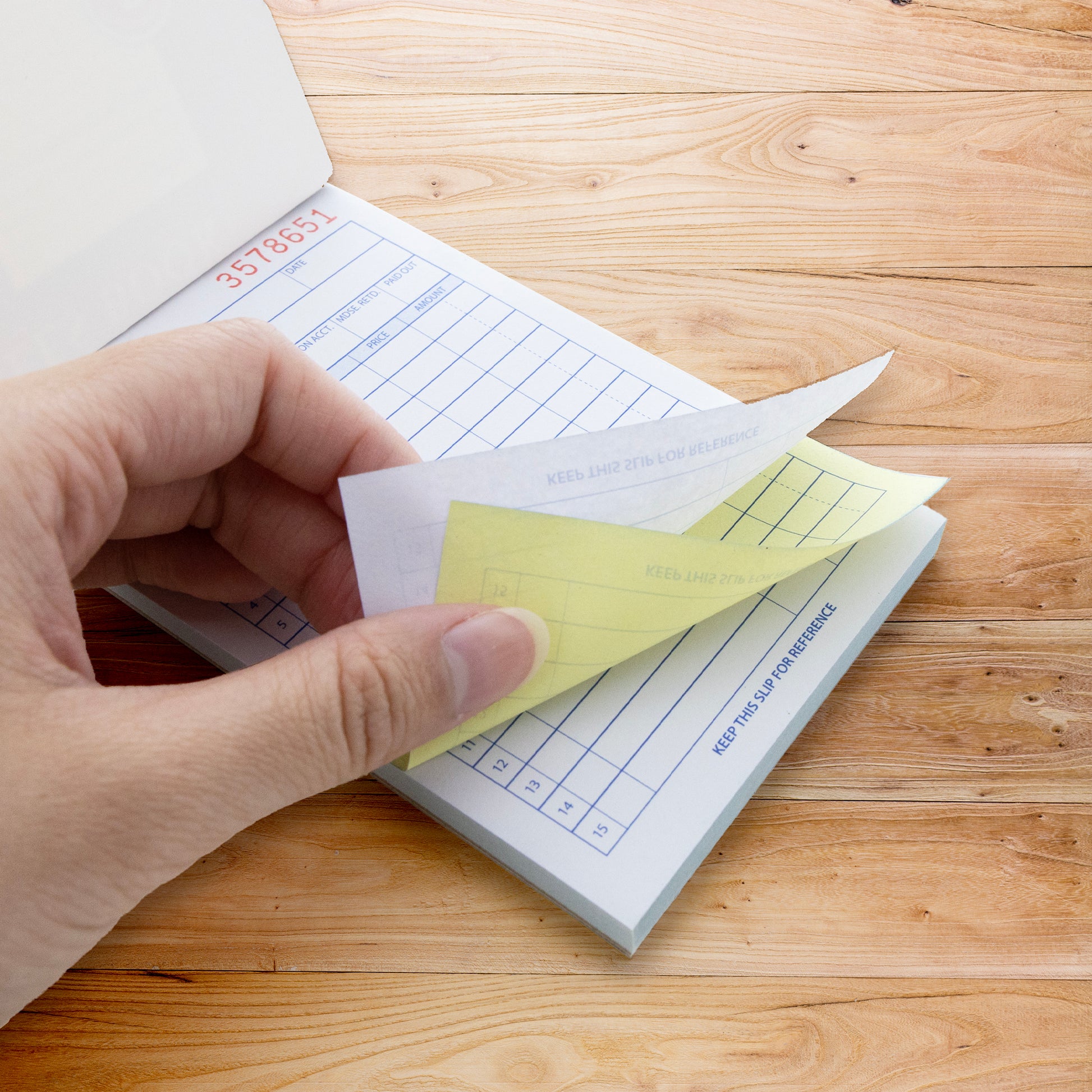 - CONSECUTIVELY NUMBERED. The unique large 7-digit receipt numbers printed in red helps you easily locate orders. Easily customize by using the extra space for your company stamp.