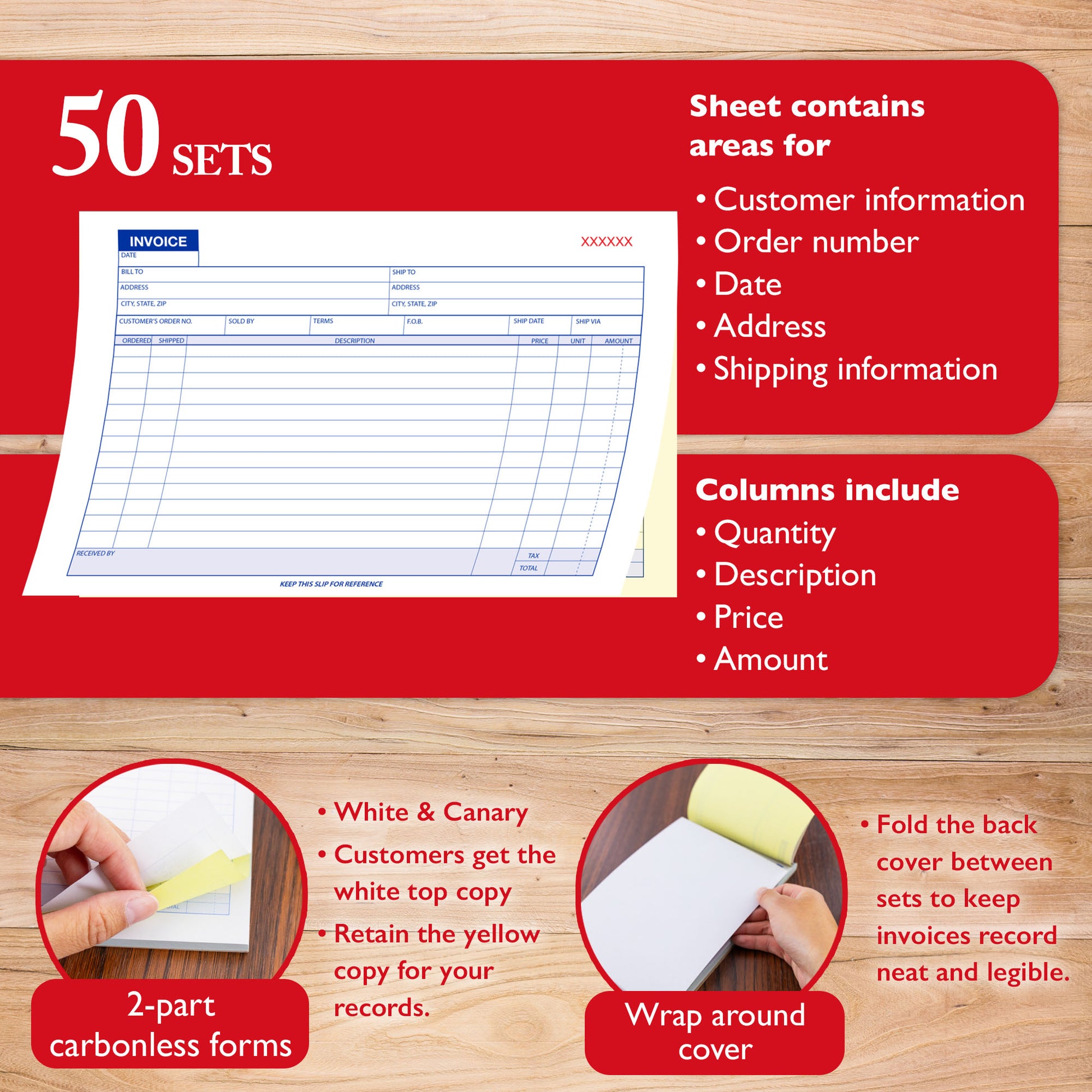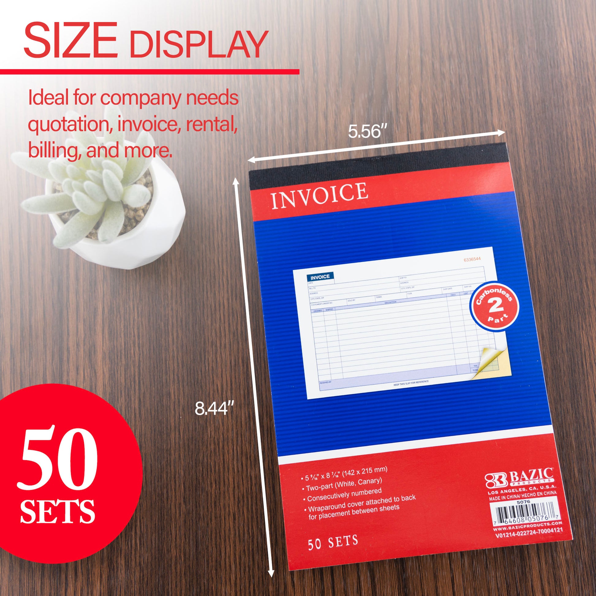 50 Sets 5 9/16" x 8 7/16" 2-Part Carbonless Invoice Book