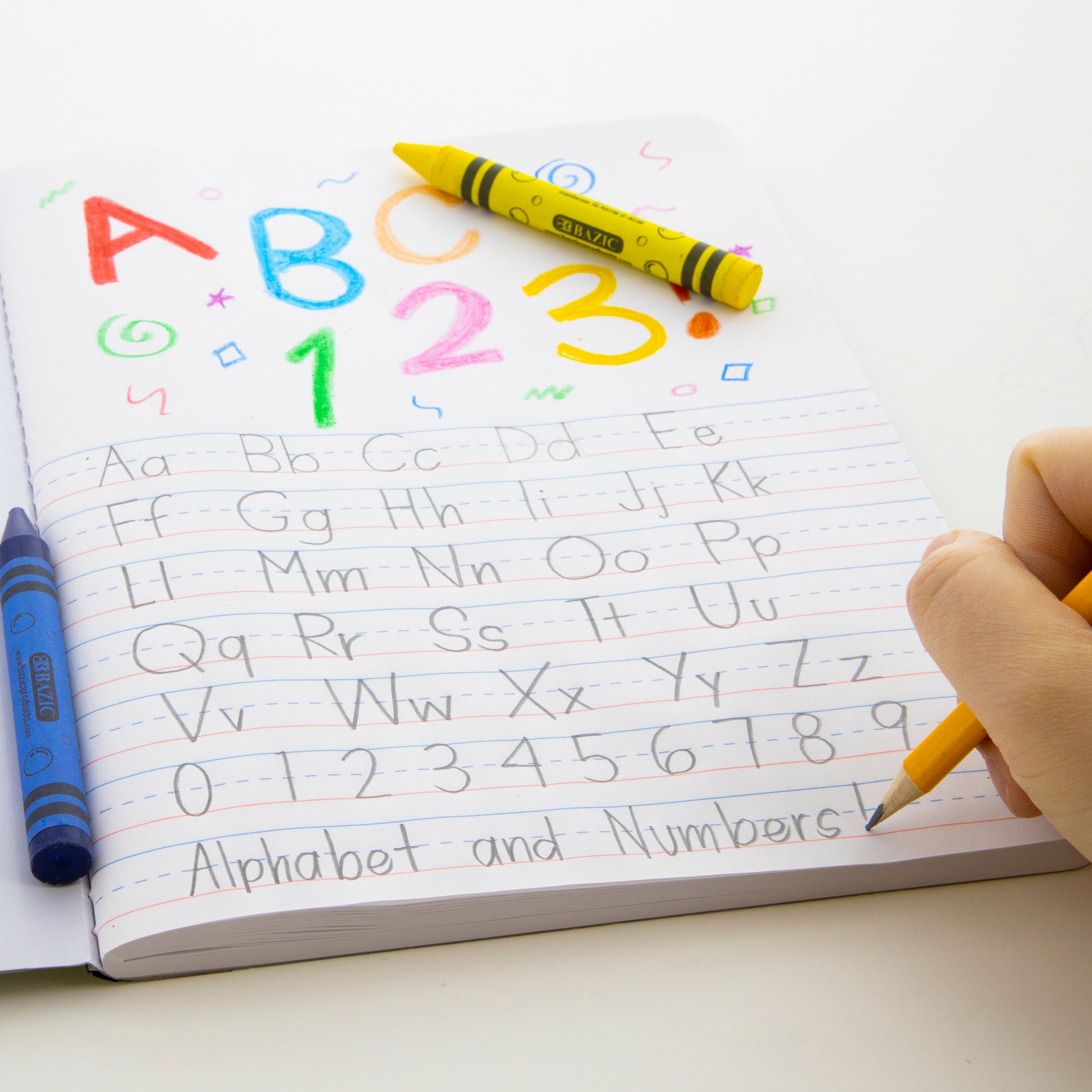 - SPECS. The pages are crafted with primary-ruled lines to easily position letters by following the red baseline. These writing notebooks are great for learning how to write the alphabet.