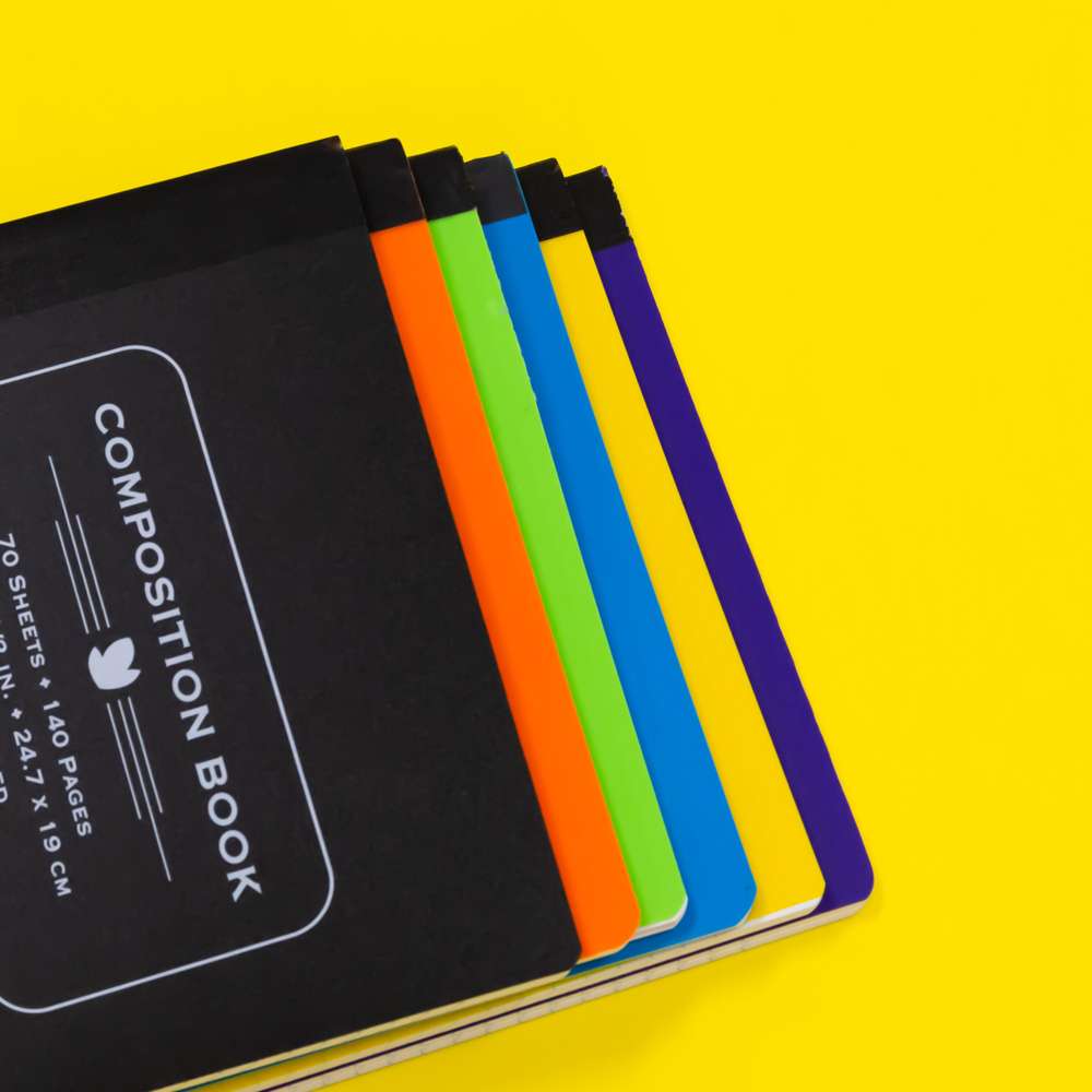 - DIFFERENT COLORS. Notebooks have 8 different colors; Blue, Yellow, Pink, White, Purple, Green, Black and Orange. You can distinguish different subjects by color coding. Actual Colors May Vary!