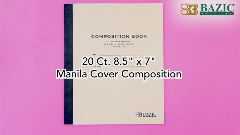 - SIMPLY NOTETAKING. Manila cover composition notebooks come with 20 sheets of wide-ruled paper. Ready for any assignment and take it with you on the go! Overall Size: 8.5" x 7"inches.