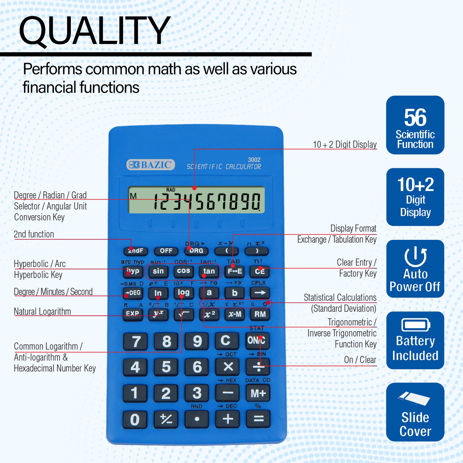 - SCIENTIFIC 10+2 DIGITS. HD display. Support natural logarithm, trigonometric, inverse trigonometric function key. Feature common logarithm / anti-logarithm & hexadecimal number key.