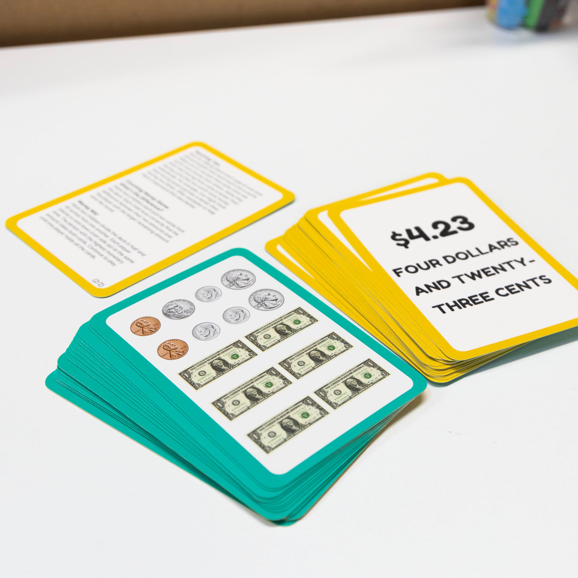 - DOUBLE-SIDED LEARNING: One side shows the amount in bills and coins, while the other states the corresponding value in written and numeric time for self-checking and practicing; Practice counting money both ways