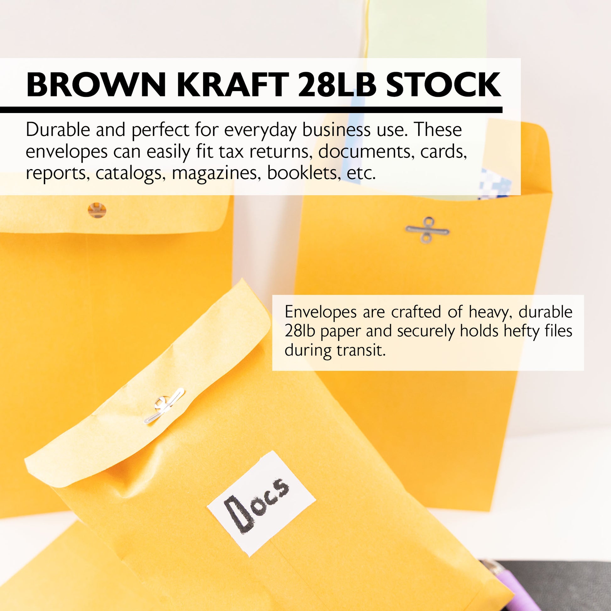 - BROWN KRAFT 28LB STOCK. Perfect for everyday business use, these clasp envelopes are crafted of heavy, durable 28lb paper and securely holds hefty files during transit.