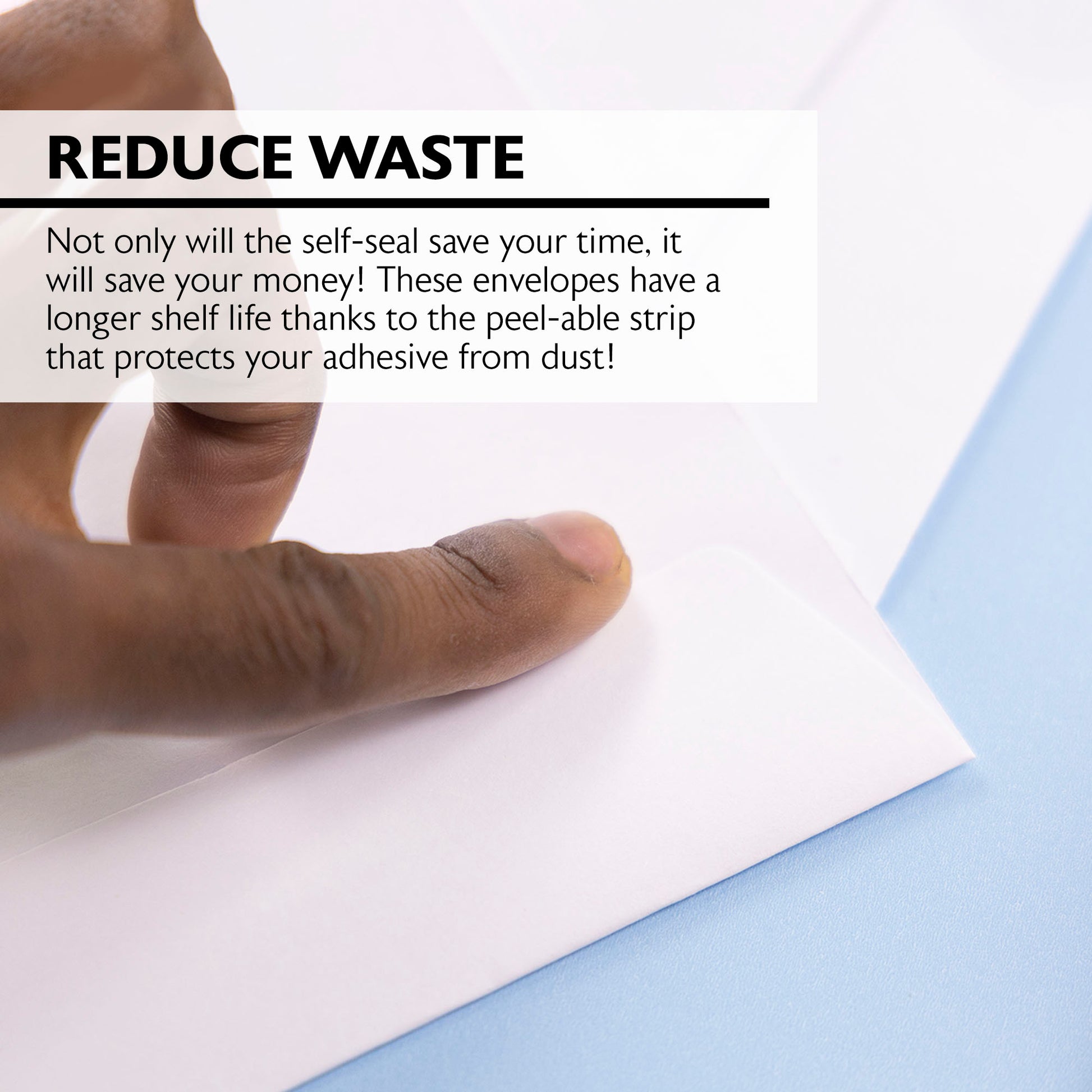 - REDUCE WASTE: Not only will the self-seal save your time, it will save your money! These envelopes have a longer shelf life thanks to the peel-able strip that protects your adhesive from dust!