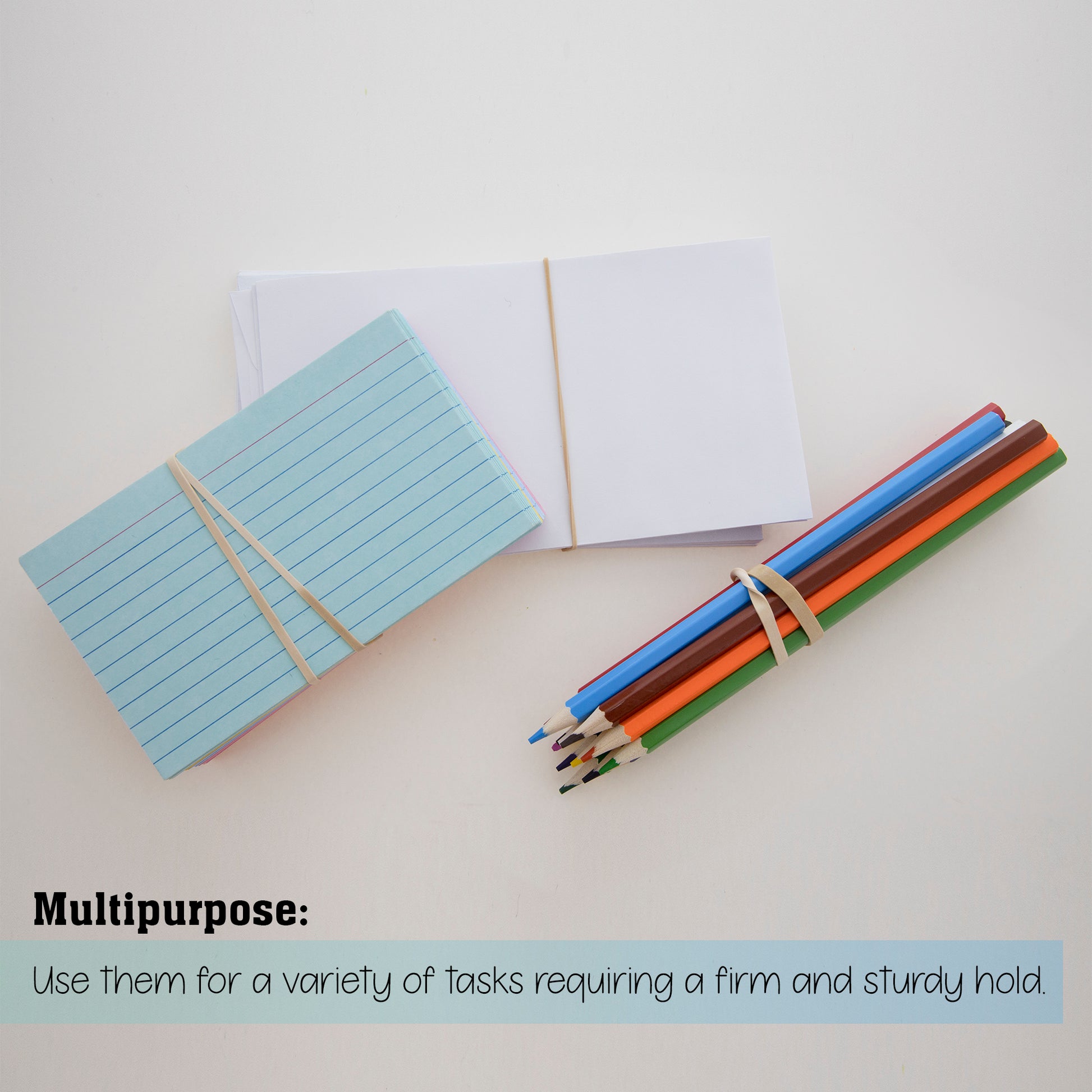 BOND TOGETHER. Come with a variety ofSizes and shapes for all of your binding needs. Perfect for practical everyday use or even for more creative ideas like rubber band balls or tie dying shirts.