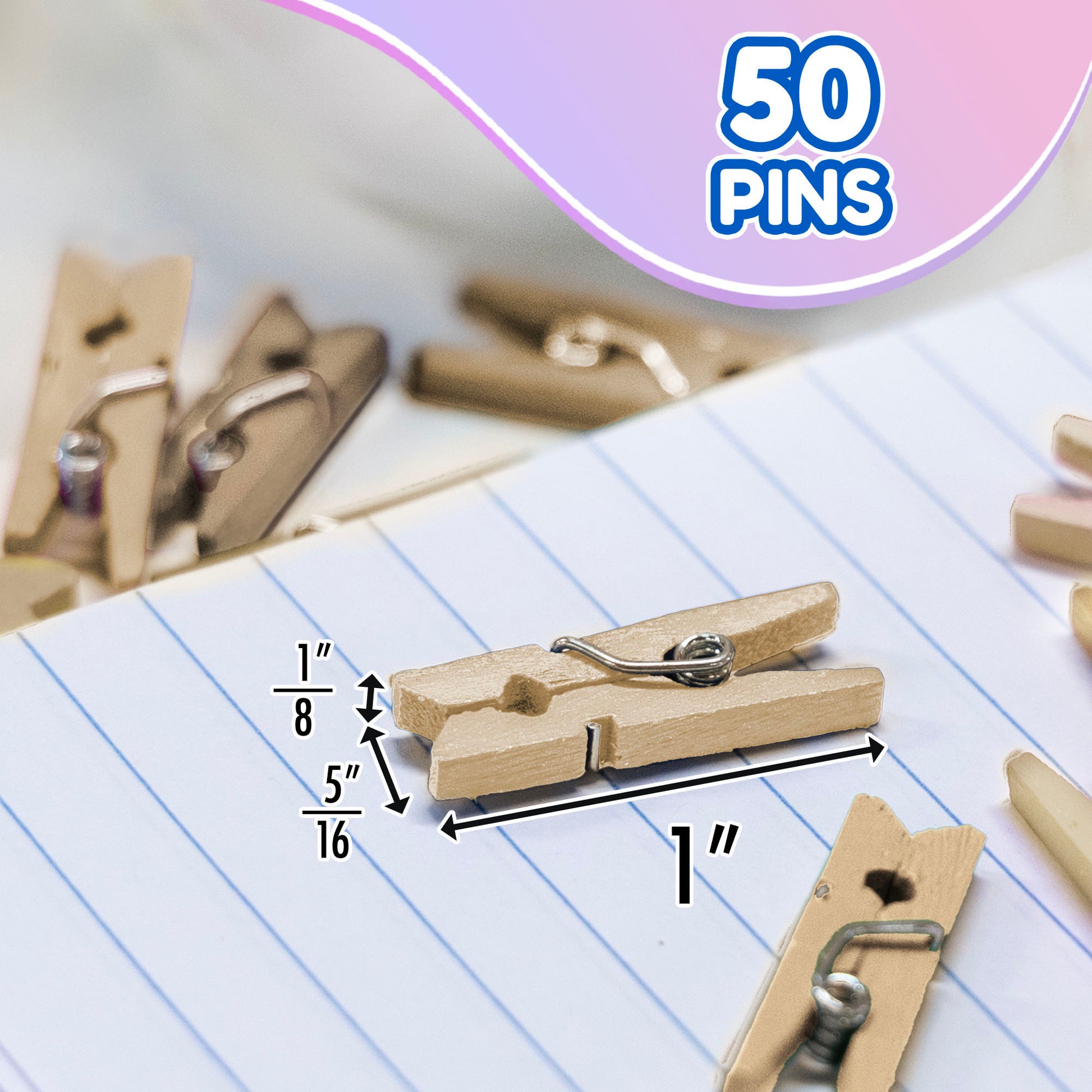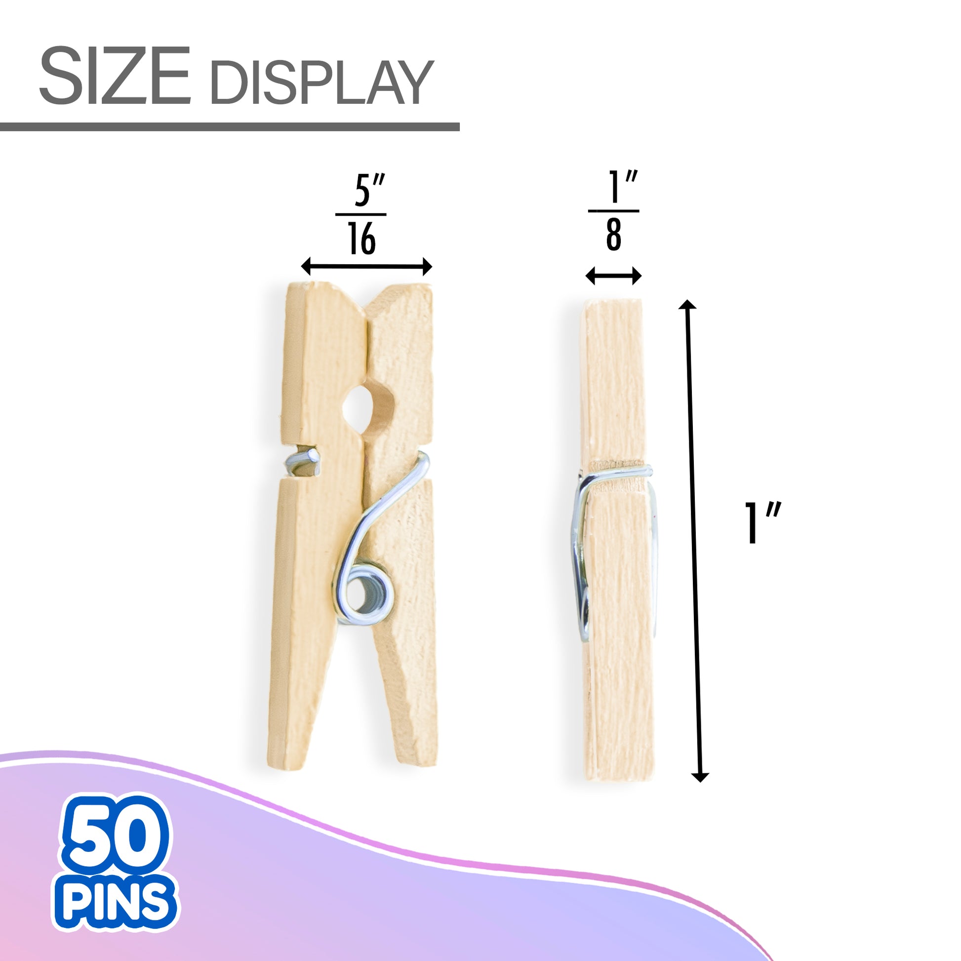 - CLOTHESPIN. The size of mini wooden clothespin is approximately 1" x 5/16" x 1/8" inch, perfect for holding small items and not taking up a lot of space.
