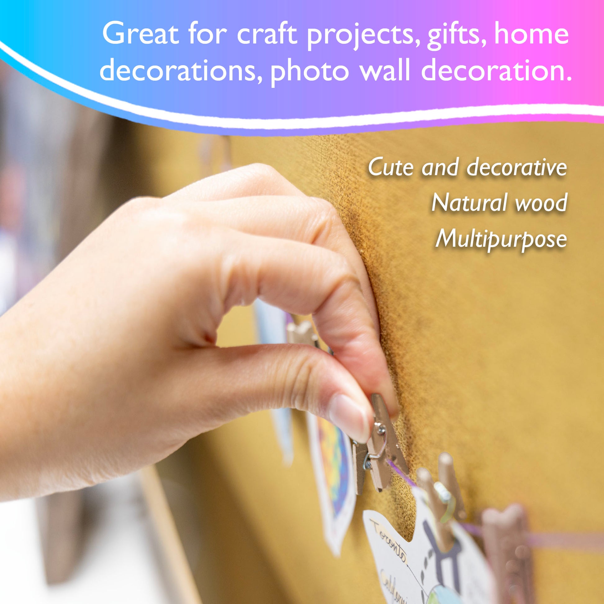 - REUSABLE & DURABLE. The cute mini wood clips are reusable to make your life more warm and interesting. NOTE: These clothespins are not meant for hanging laundry or clothing.
