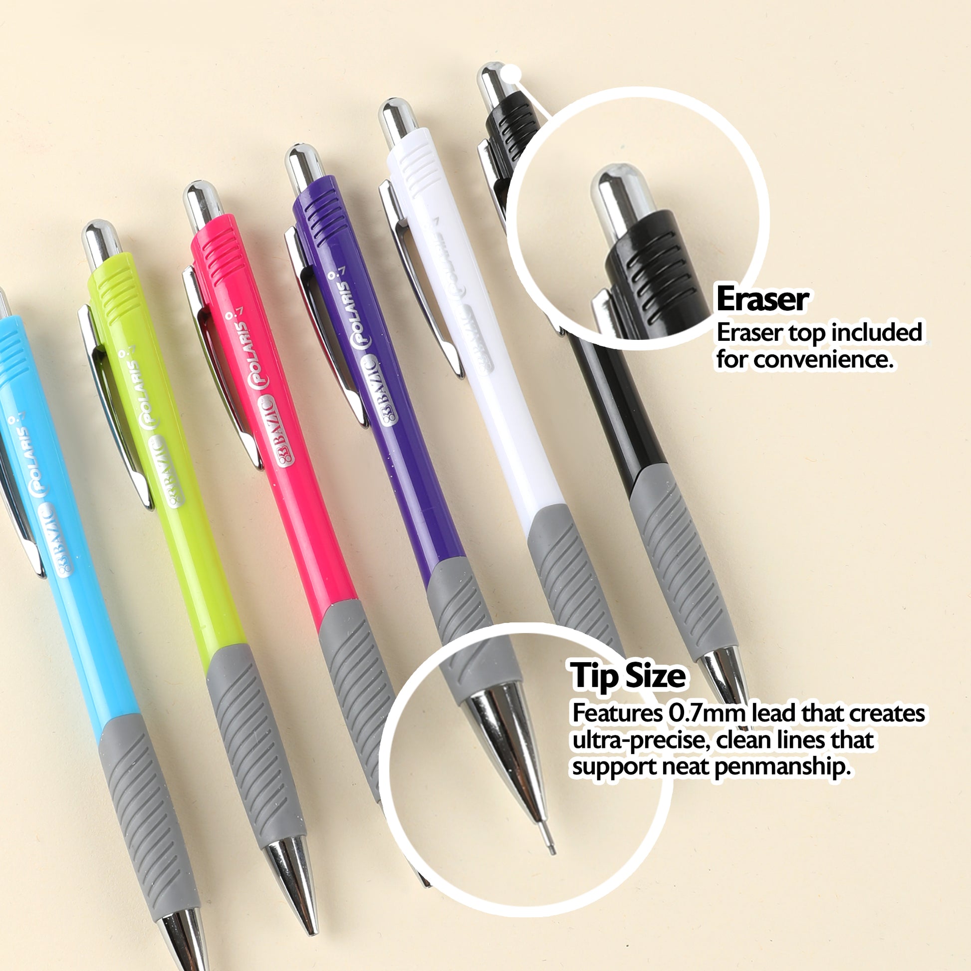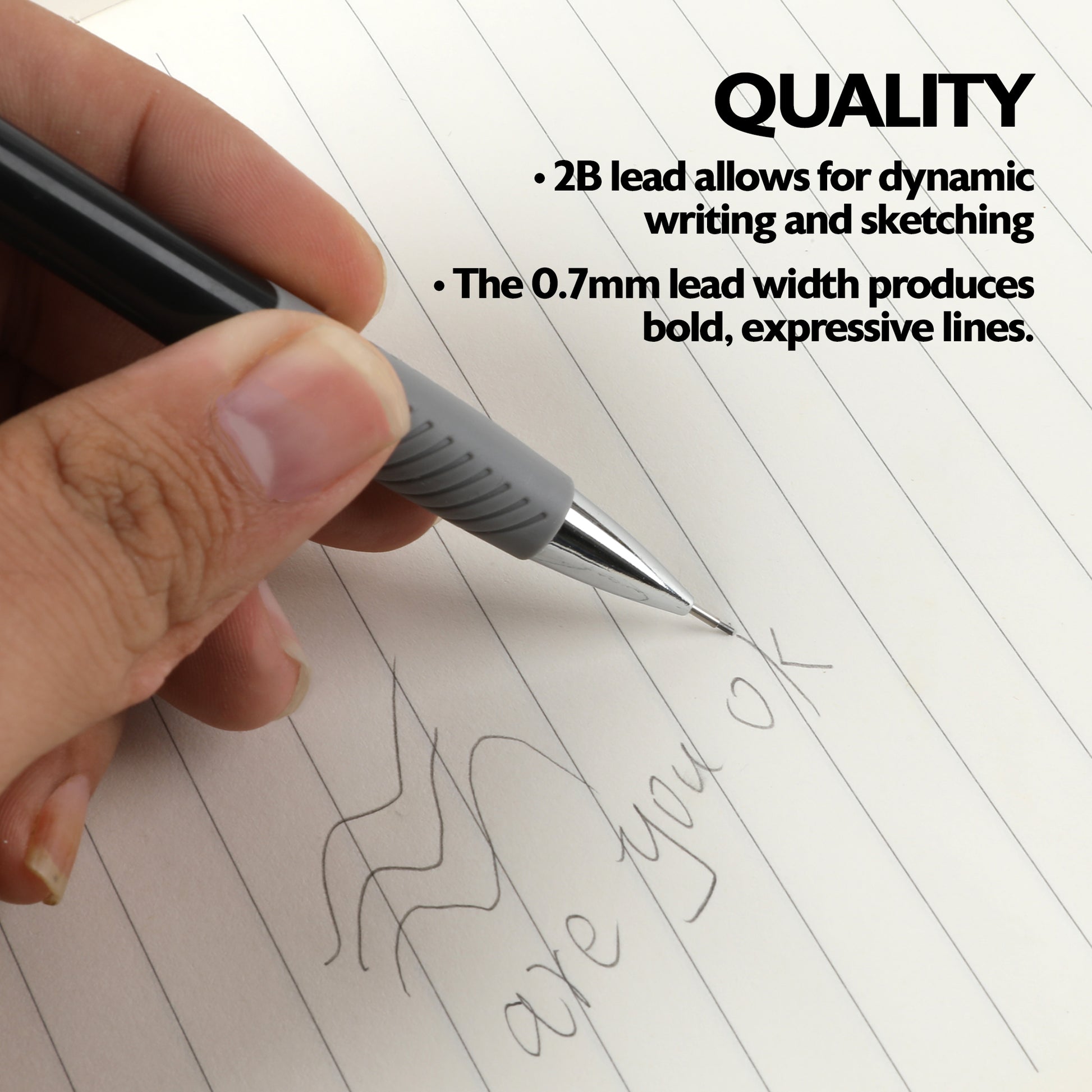 - QUALITY. The mechanical pencils high polymer 2B lead allows for dynamic writing and sketching, while the 0.7mm lead width produces bold, expressive lines. Eraser top included for convenience.