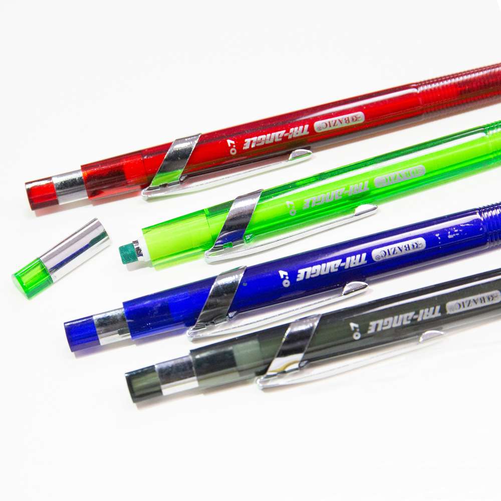 - TRI-ANGLE 0.7MM MECHANICAL PENCIL. BAZIC's Tri-angle 0.7mm Mechanical Pencil W/ Ceramics High-Quality Lead is a useful product for drawing or writing. Comes in assorted color; Actual Colors May Vary!