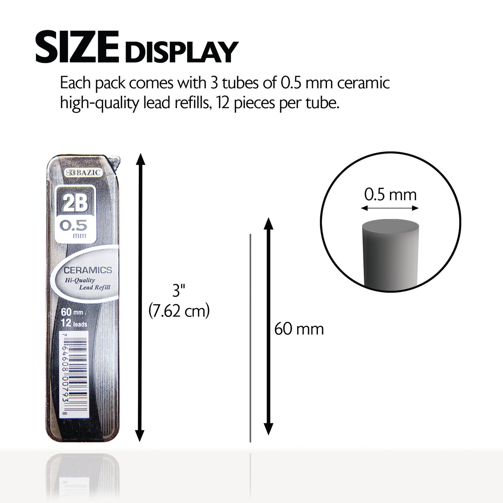 - 0.5 MM CERAMIC HIGH-QUALITY LEAD REFILLS. Each pack comes with 3 tubes of 0.5mm ceramic high-quality lead refills, 12 pieces per tube. Works with any 0.5mm mechanical pencils.