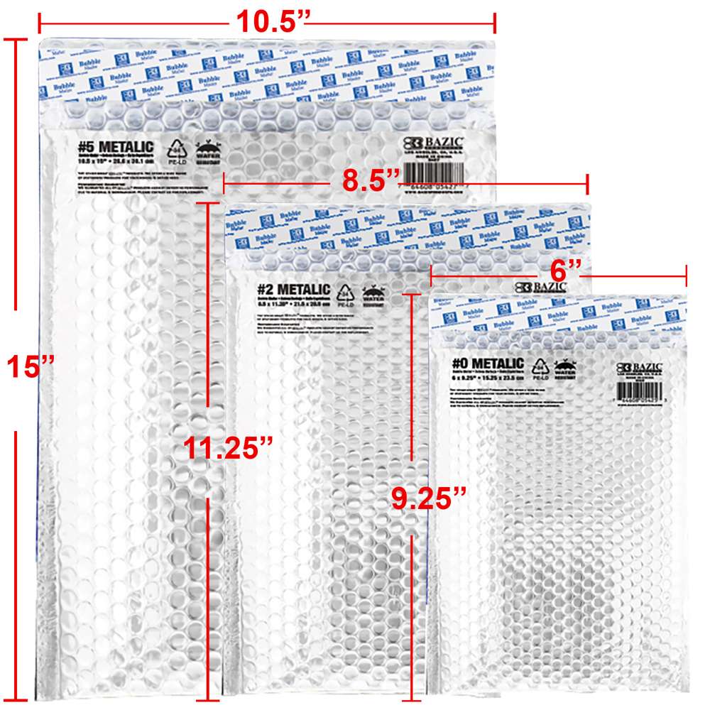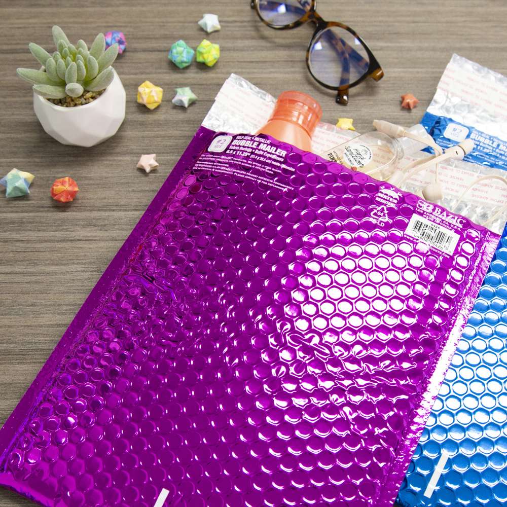 - #2 METALLIC SELF-SEAL BUBBLE MAILERS. 8.5" x 11.25"inch; Our color poly bubble mailers are sure to set your business apart from the rest. Build a lasting impression that'll keep your customers coming back.