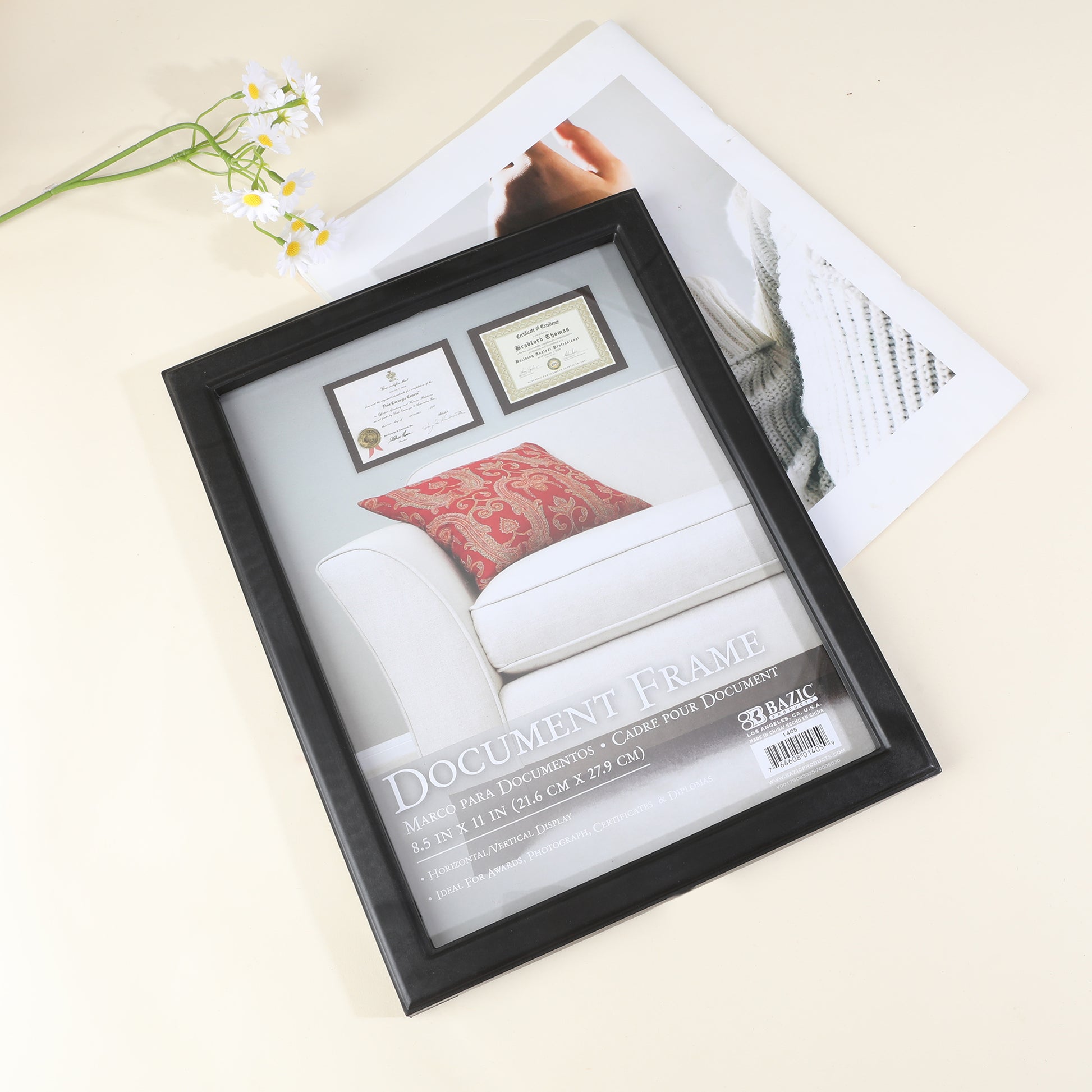 - DOCUMENT FRAME. The Overall Size of the picture document frame is 8.5" x 11" inch. The frame can display photos, documents, artworks, and certificates.