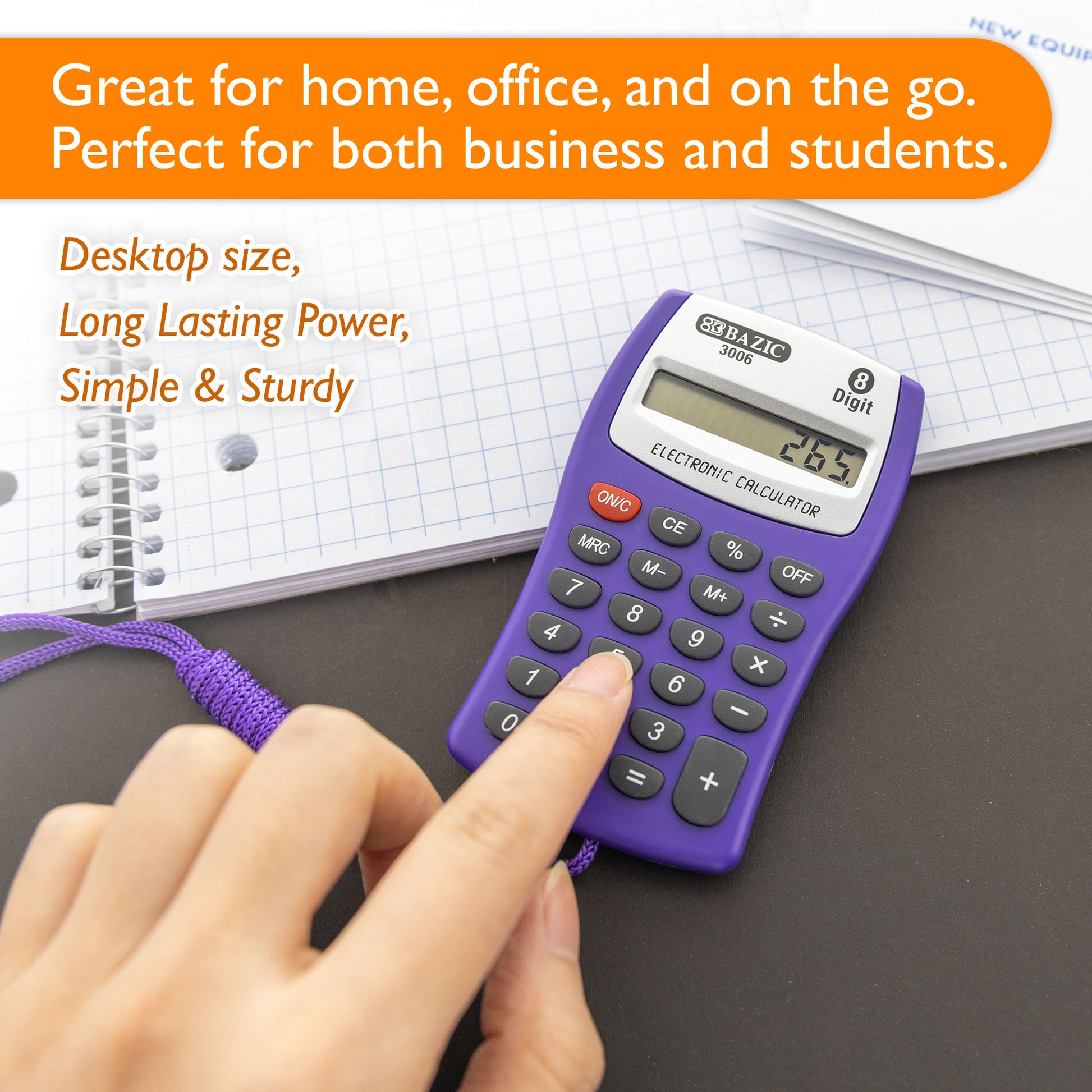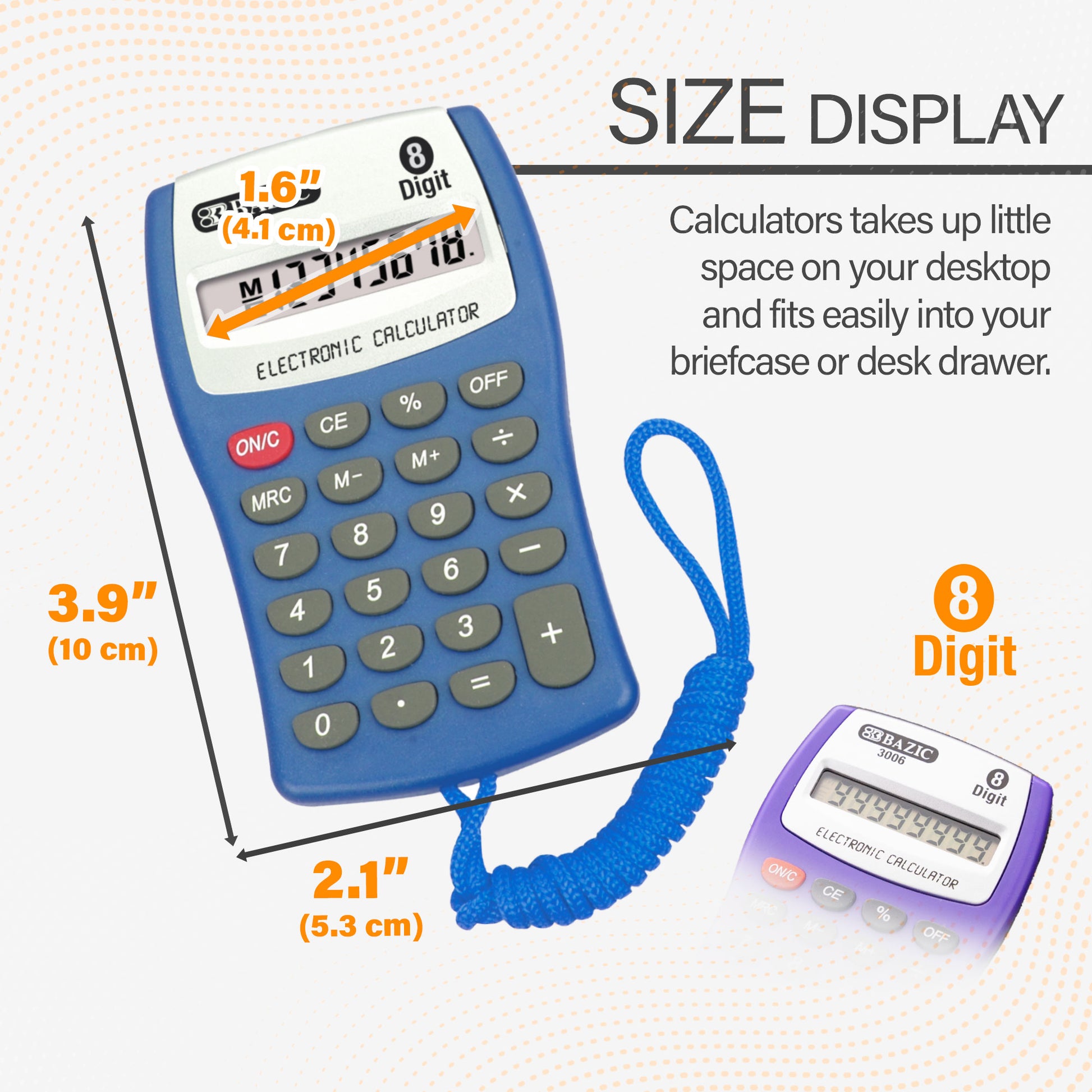 - MINISize. Pocket calculators, smallSize is suitable for your business travel use. This easy to use calculator takes up little space on your desktop and fits into your briefcase or desk drawer.