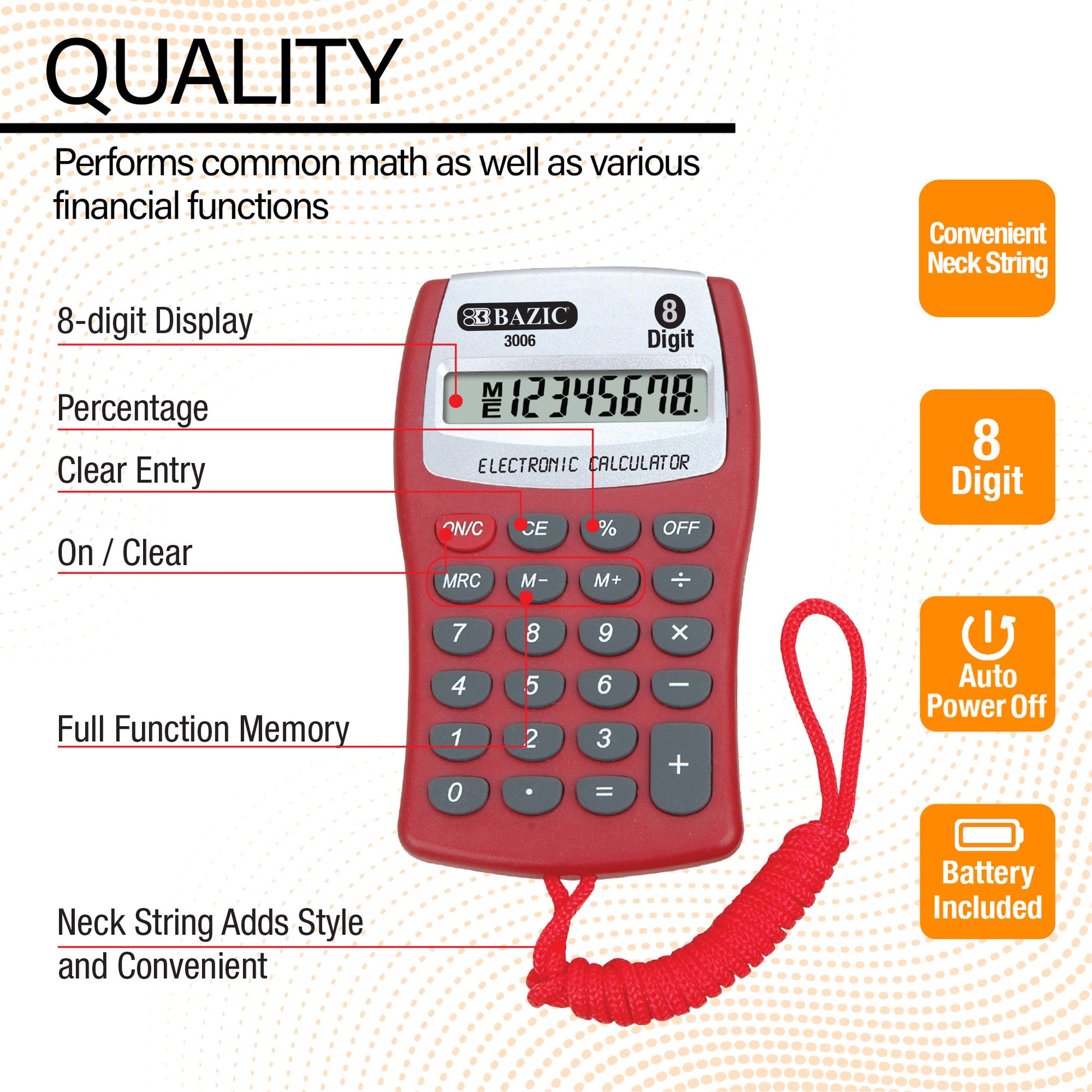 8-Digit Pocket Size Calculator w/ Neck String