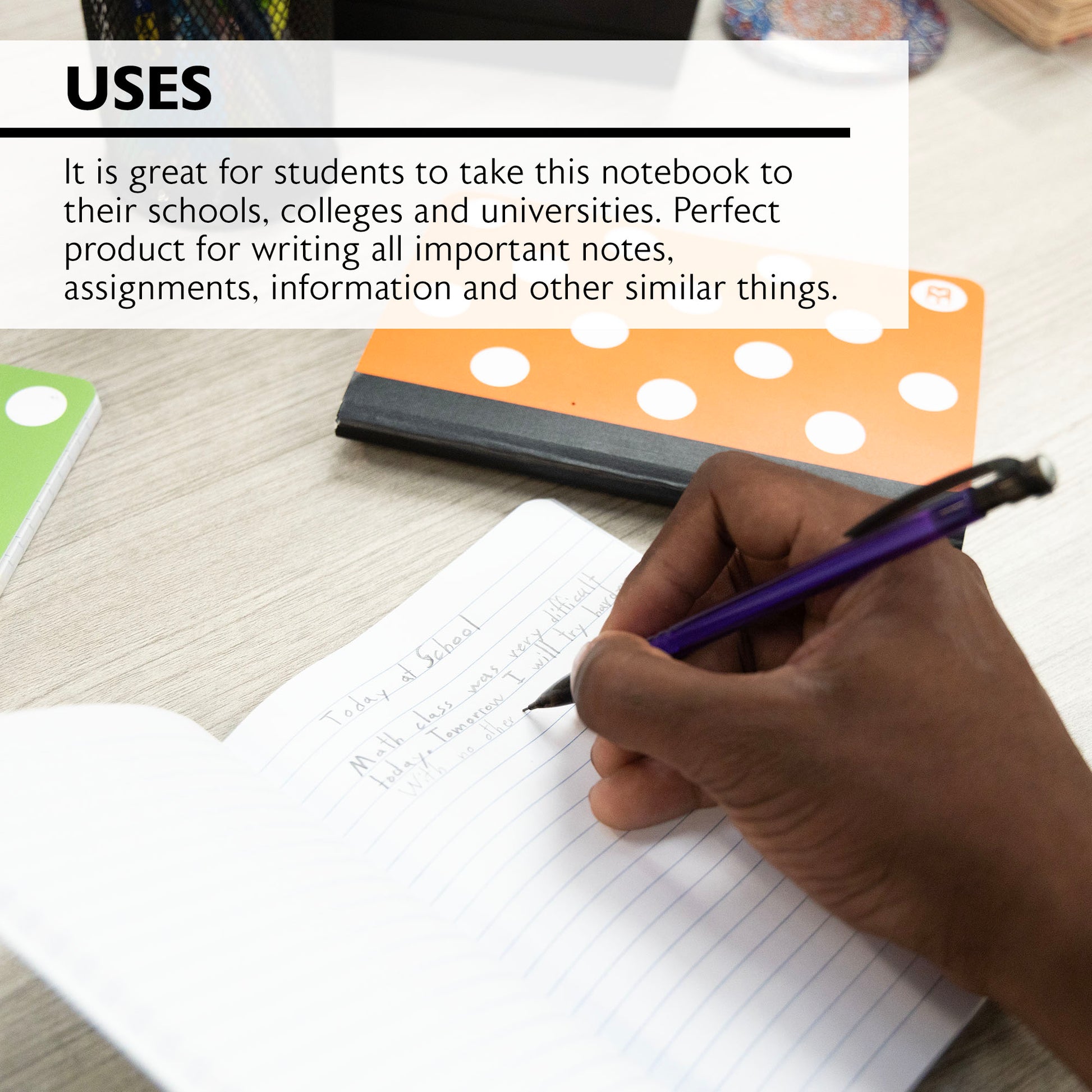 - USES. It is great for students to take this notebook to their schools, colleges and universities. Perfect product for writing all important notes, assignments, information and other similar things.