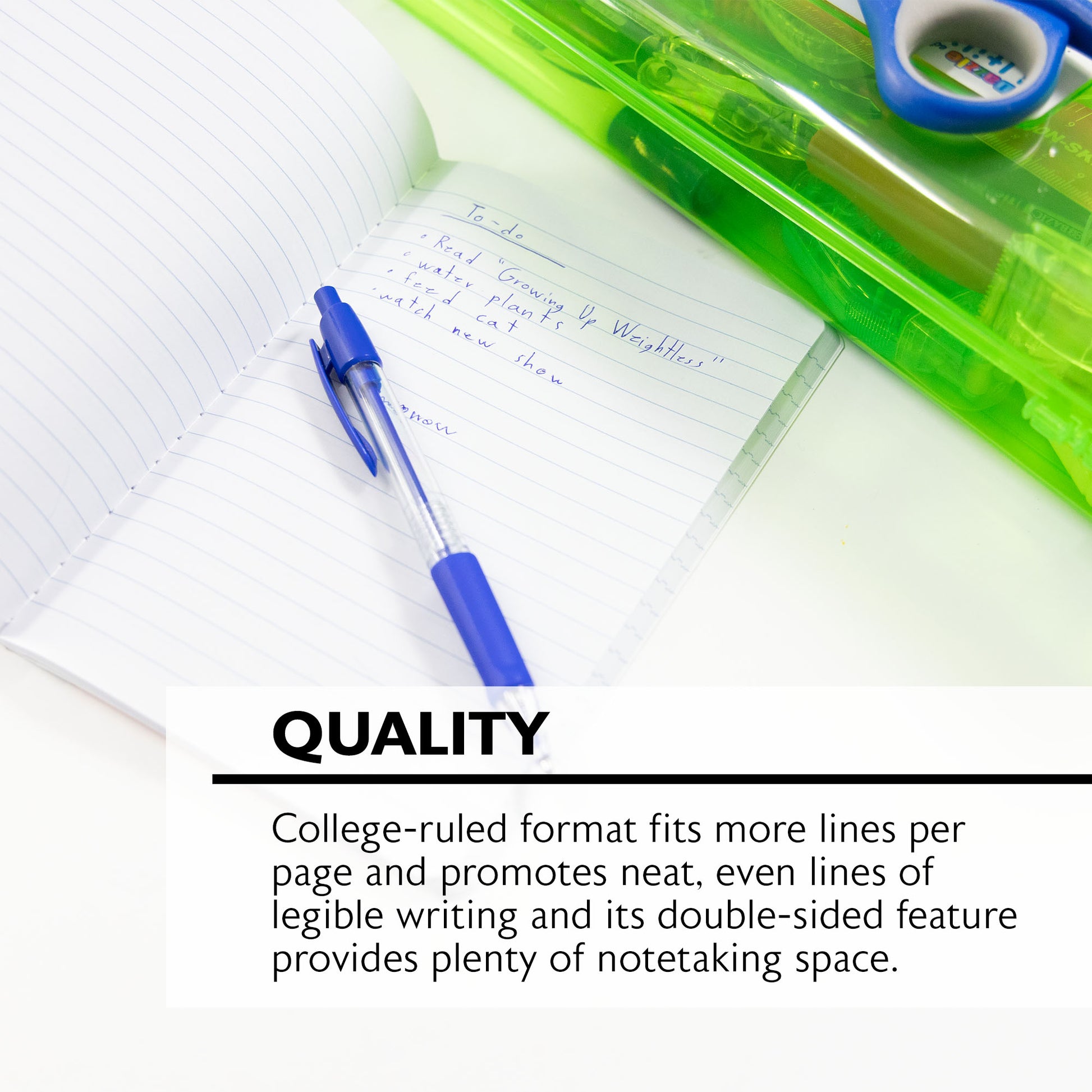 - QUALITY. College-ruled format fits more lines per page and promotes neat, even lines of legible writing and its double-sided feature provides plenty of notetaking space.